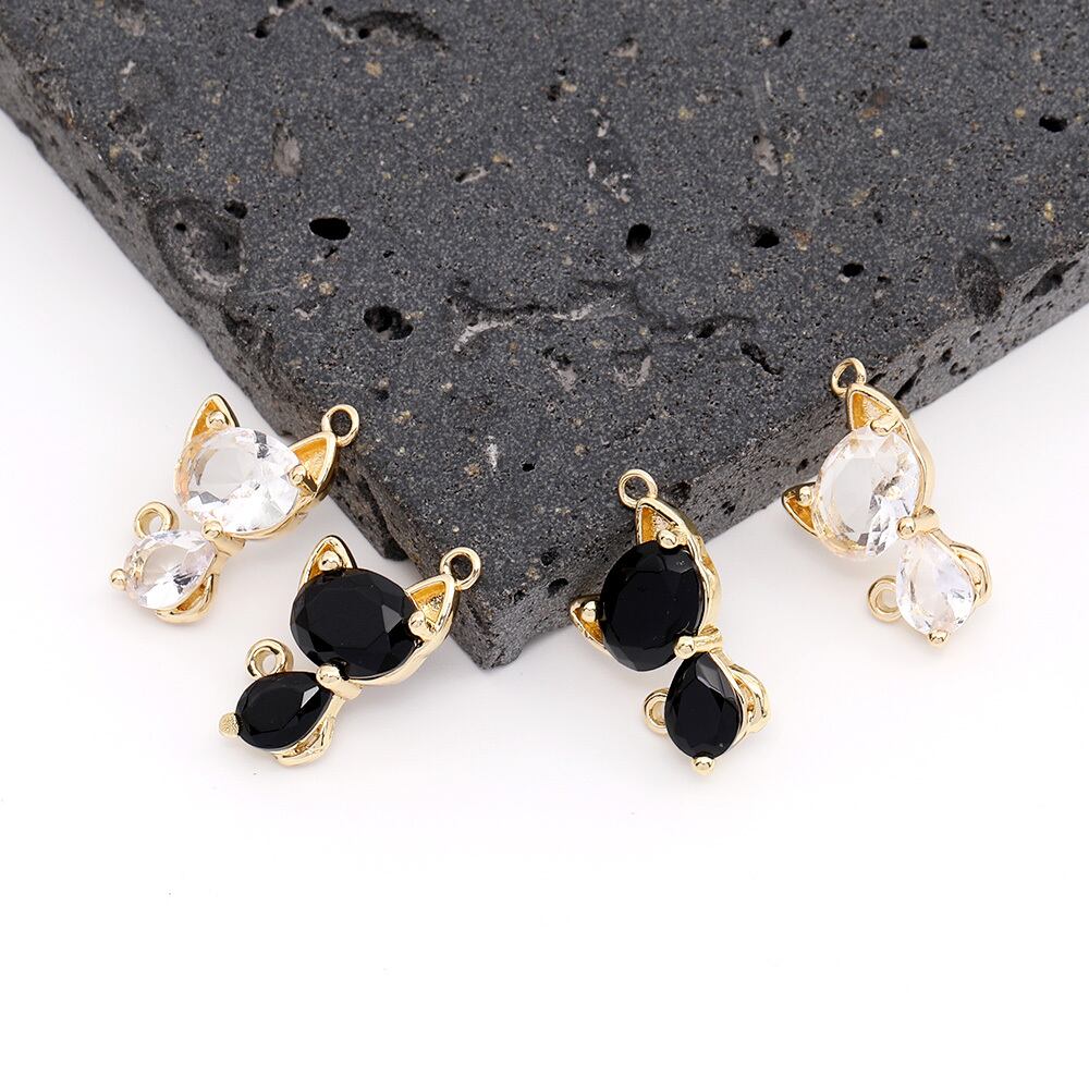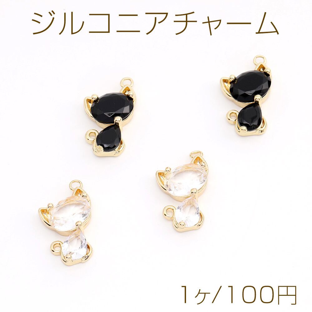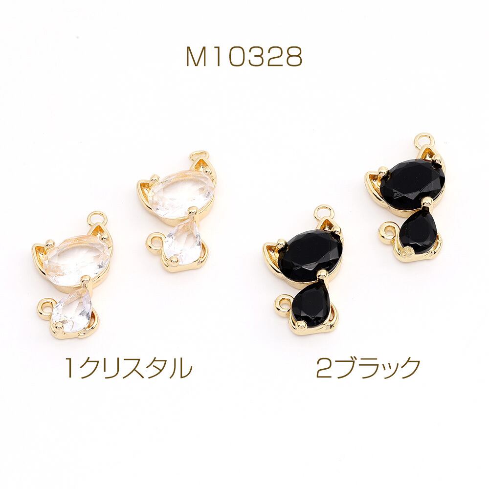 M10328 ジルコニアチャーム コネクターチャーム 猫 2カン付き 11×19mm ゴールド(1ヶ) | Beads&parts BASE2号店