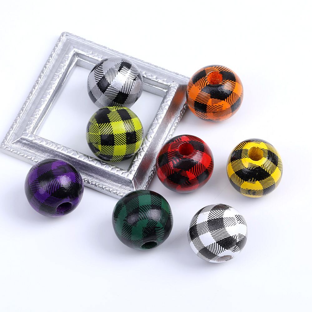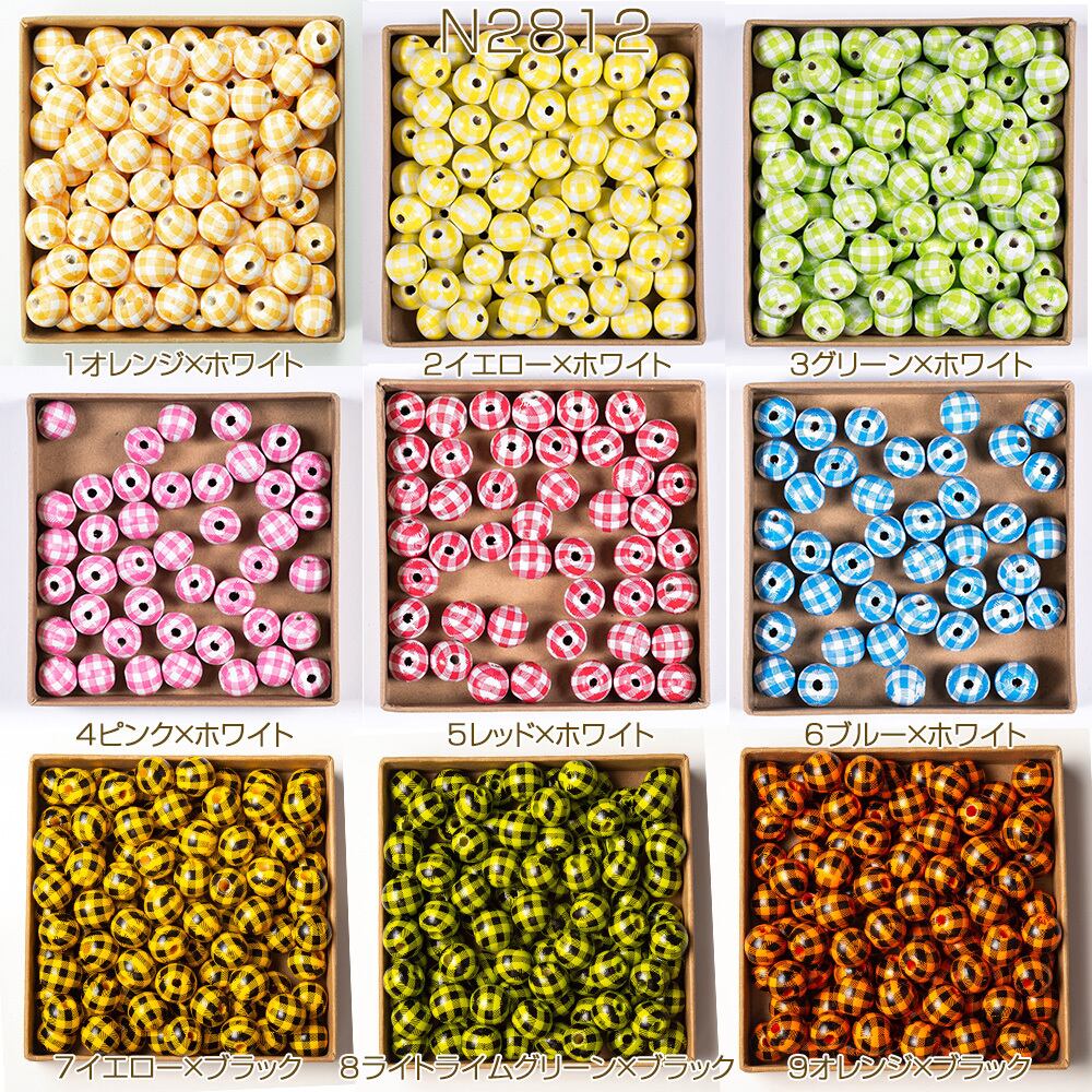 N2812 チェック柄ウッドビーズ 丸玉 縦穴あり ラウンドウッドビーズ ギンガムチェック柄ウッドビーズ 16mm(10ヶ) | Beads&parts BASE2号店