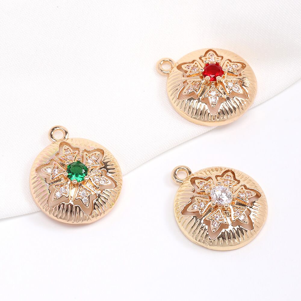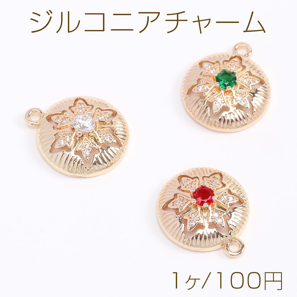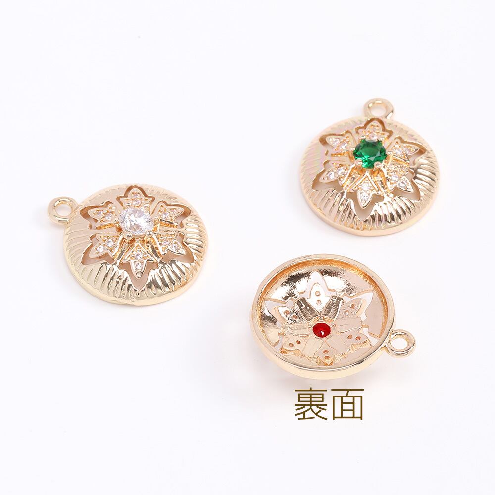 M10466 高品質ジルコニアチャーム 丸型 17×20mm ゴールド(1ヶ) | Beads&parts BASE2号店
