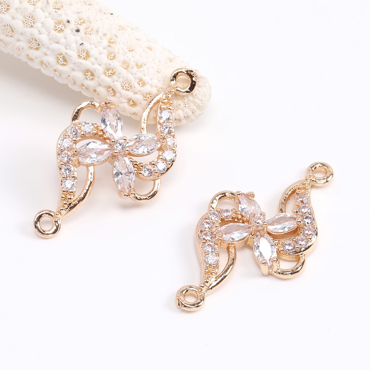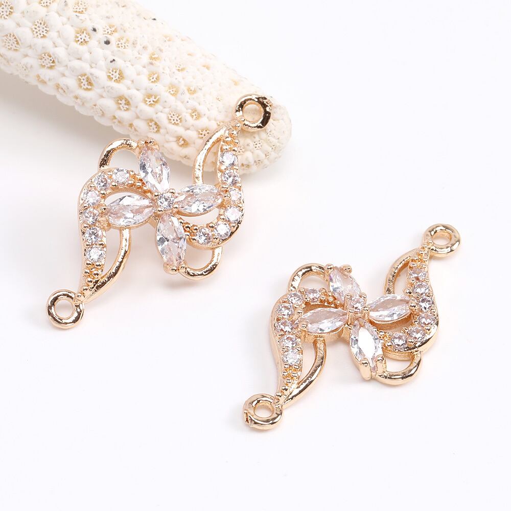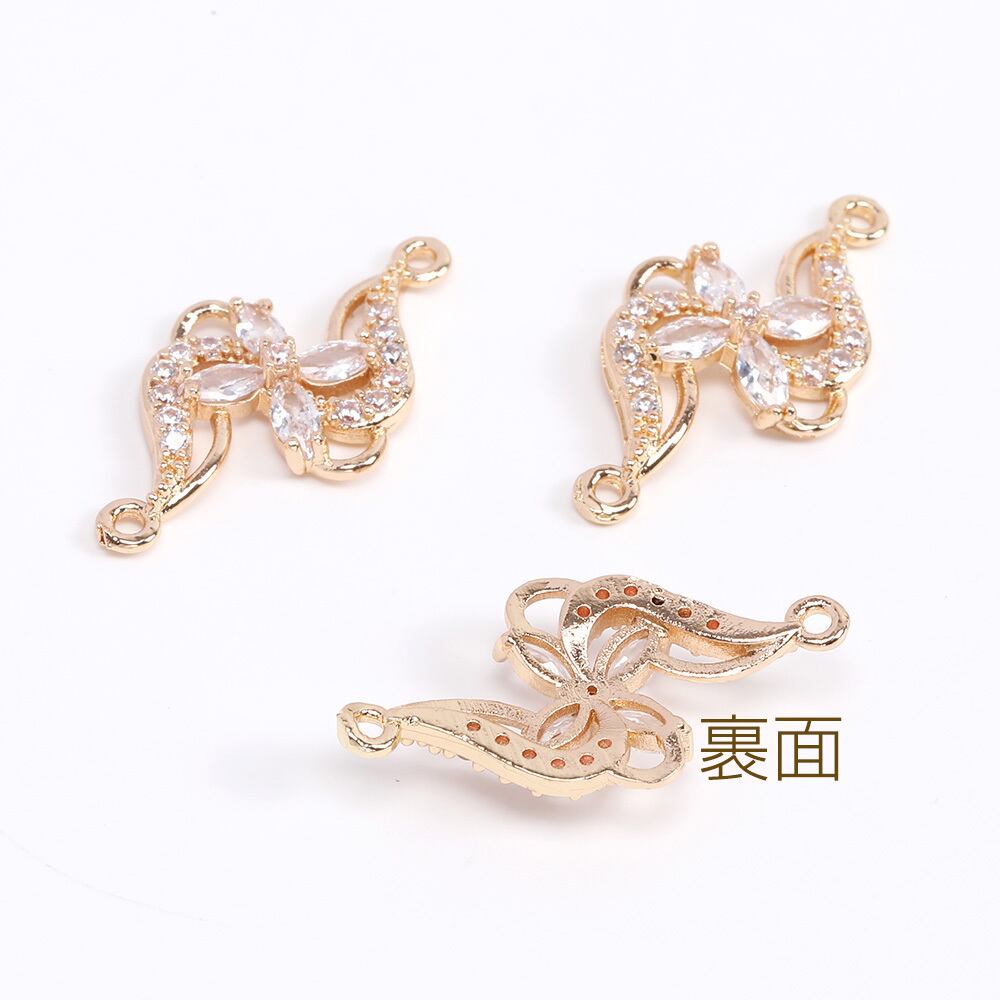 M10488 高品質ジルコニアチャーム コネクターチャーム 2カン付き 14×28mm ゴールド(1ヶ) | Beads&parts BASE2号店