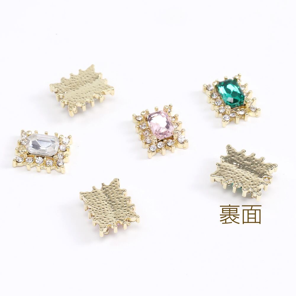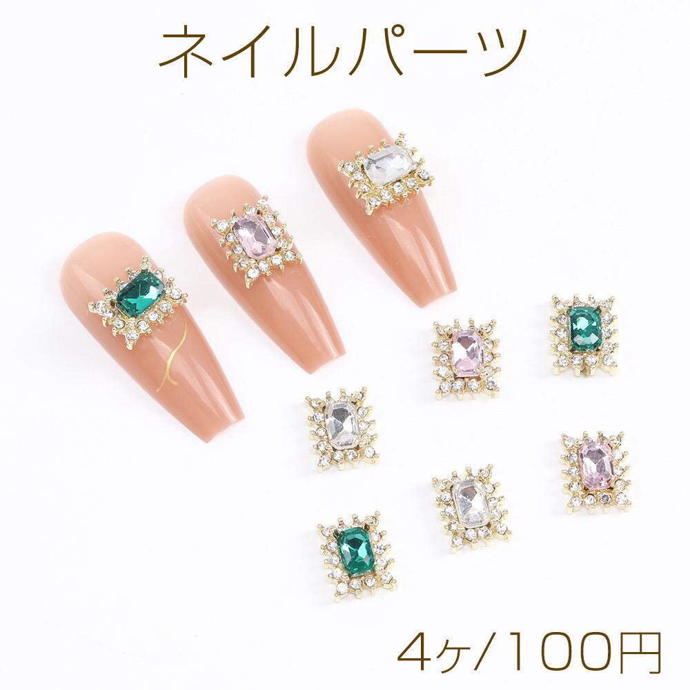 M10510 ネイルパーツ メタルネイルパーツ ラインストーンネイルパーツ 長方形 8×10mm ゴールド(4ヶ)