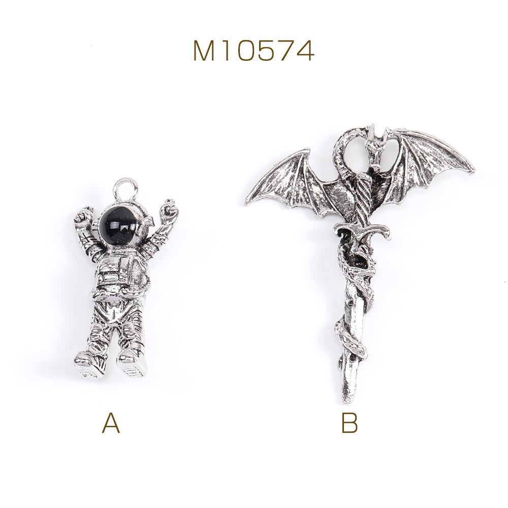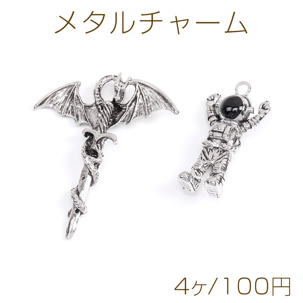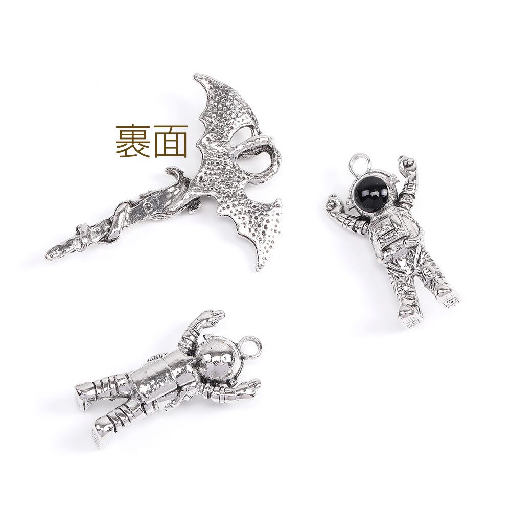 M10574 メタルチャーム 宇宙飛行士 十字架 アンティークシルバー