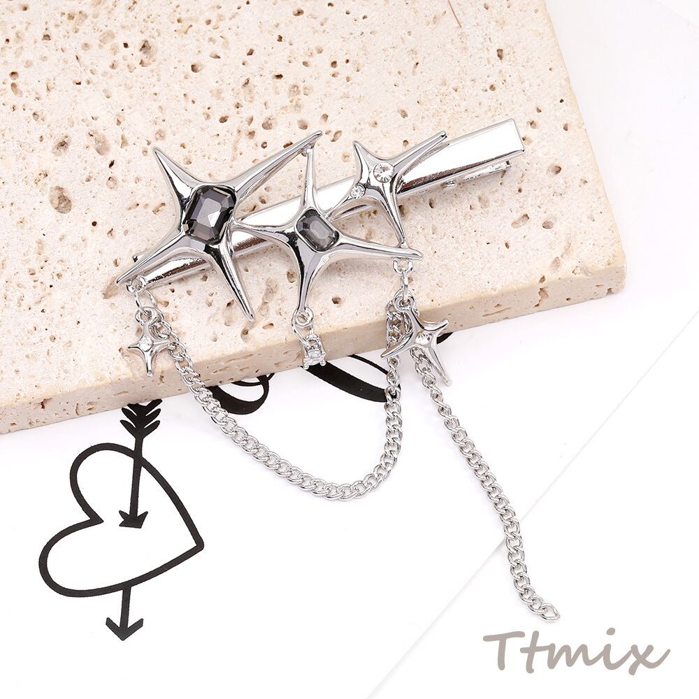 TH936 メタルヘアクリップ ジルコニア付き スター チェーンタッセル付き 65×80mm ロジウム(1ヶ)