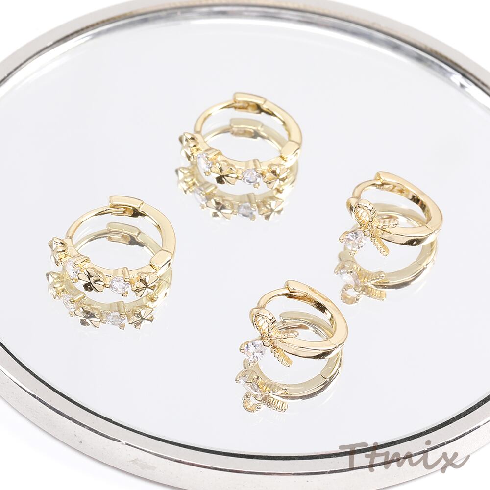 TE910 ジルコニアフープピアス 十字架 星形 フラワー リボン ゴールド