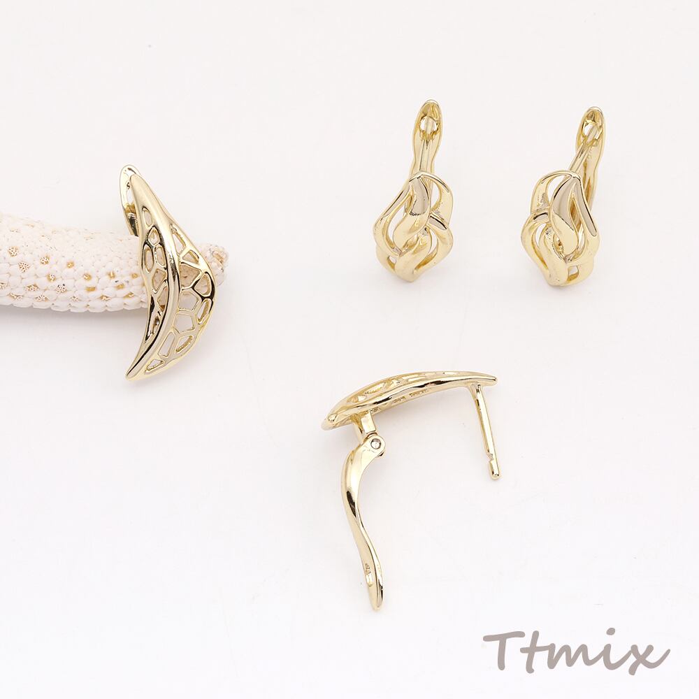 TE912 デザインピアス 透かしリーフのピアス ゴールド