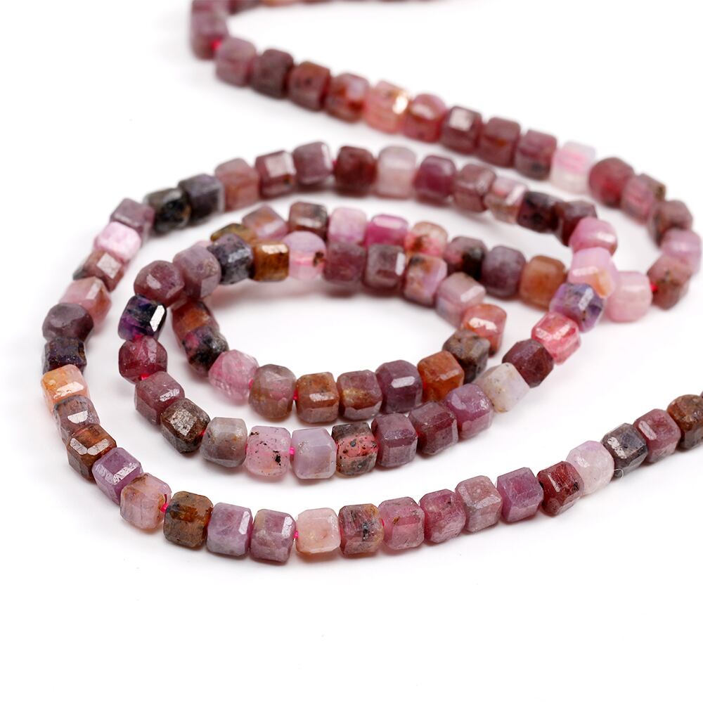 N2866 天然石ビーズ ルビー キューブ多面カット 2.5×2.5mm 1連(約145ヶ)