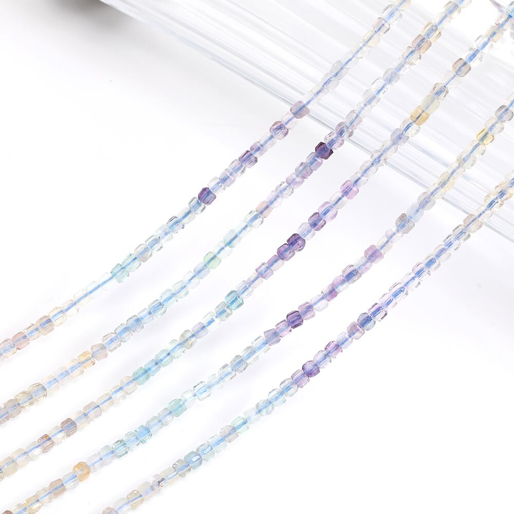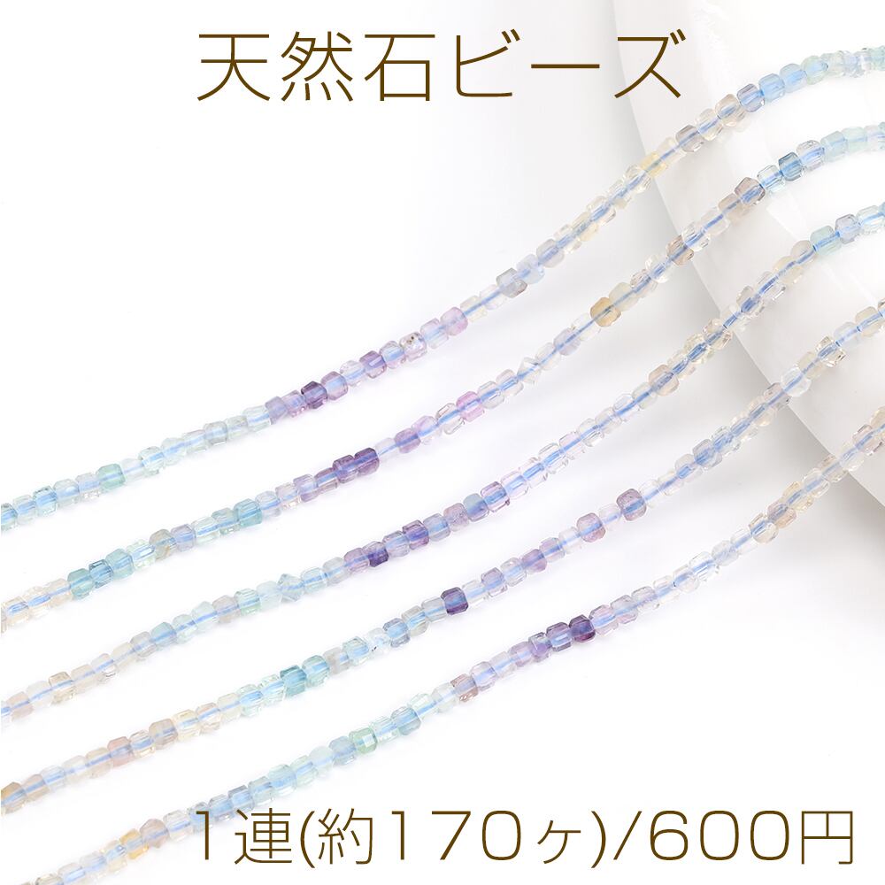 N2879 天然石ビーズ パープルアクアマリン グラデーションカラー キューブ多面カット 2×2mm 1連(約170ヶ)