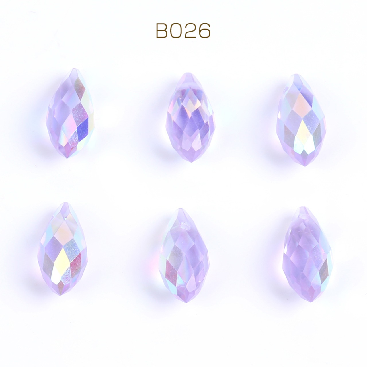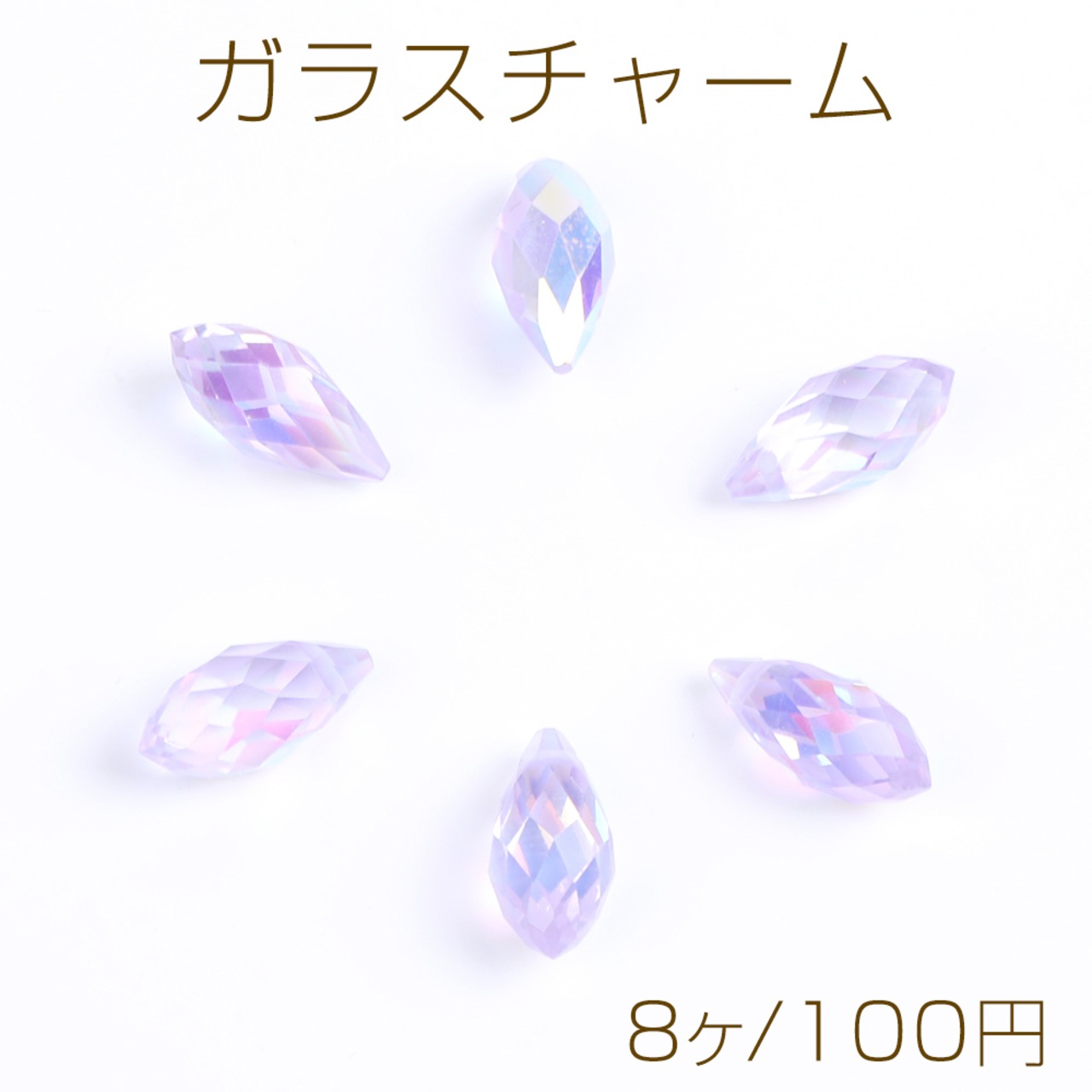 B026 ガラスチャーム しずく型カット 横穴あり 6×12.5mm パープル(8ヶ)