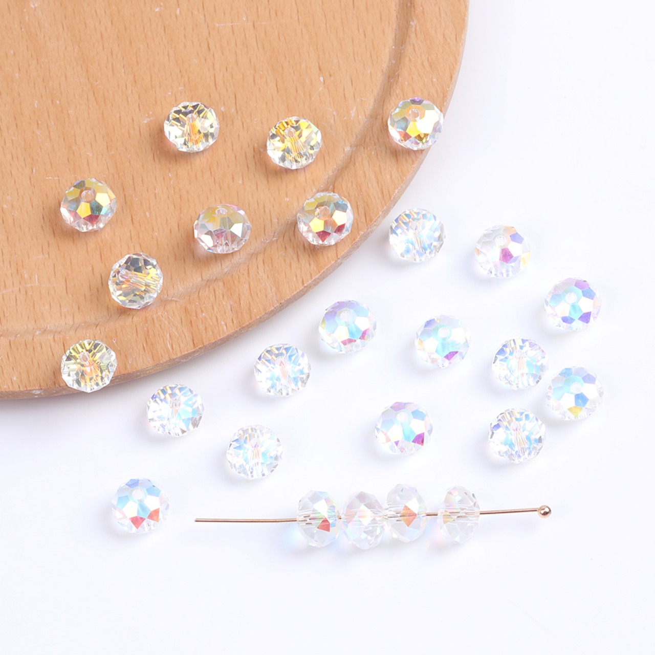 B022 ガラスビーズ ボタンカット 6×8mm クリアオーロラカラー(15ヶ) | Beads&parts BASE2号店