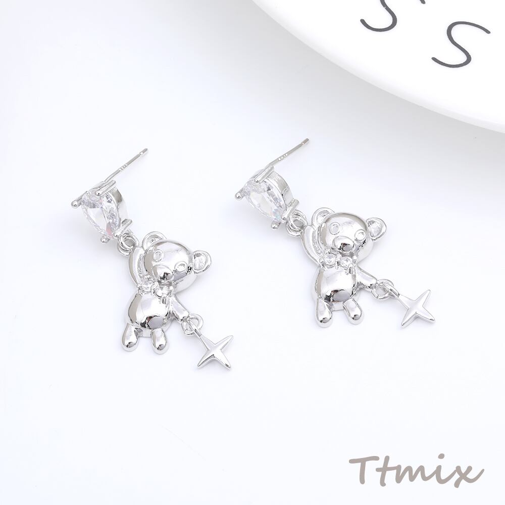 TE046 デザインピアス クマのピアス 17×37mm(1ペア)