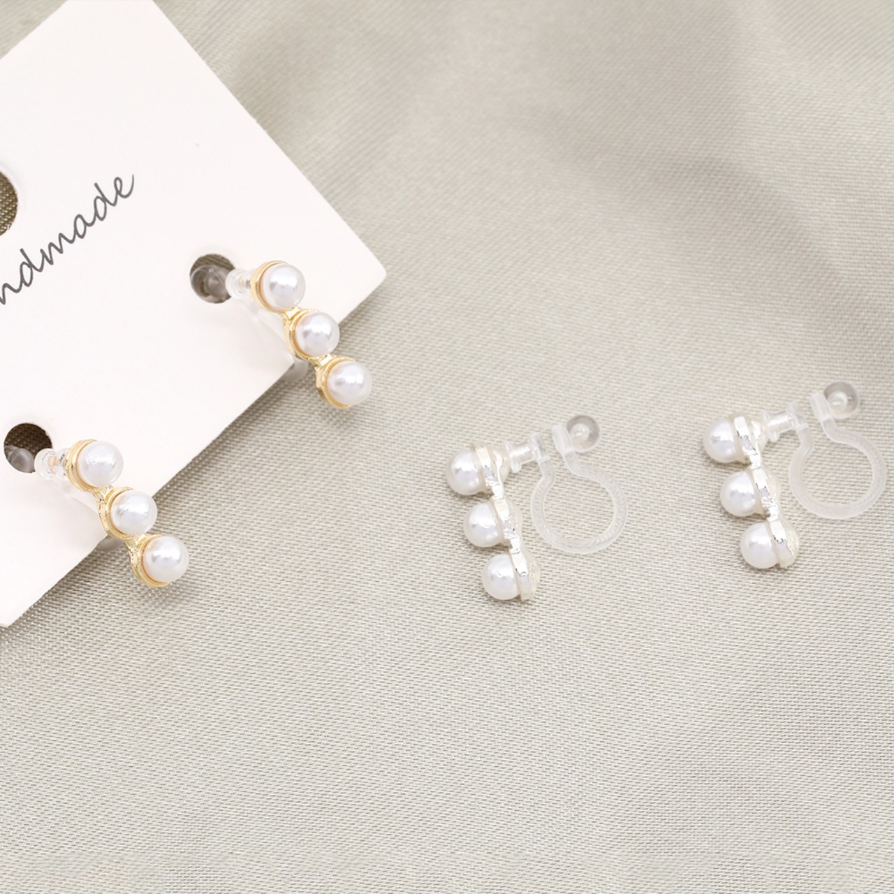 M10845 樹脂ノンホールピアス パール付き 4×13mm(1ペア) | Beads&parts BASE2号店