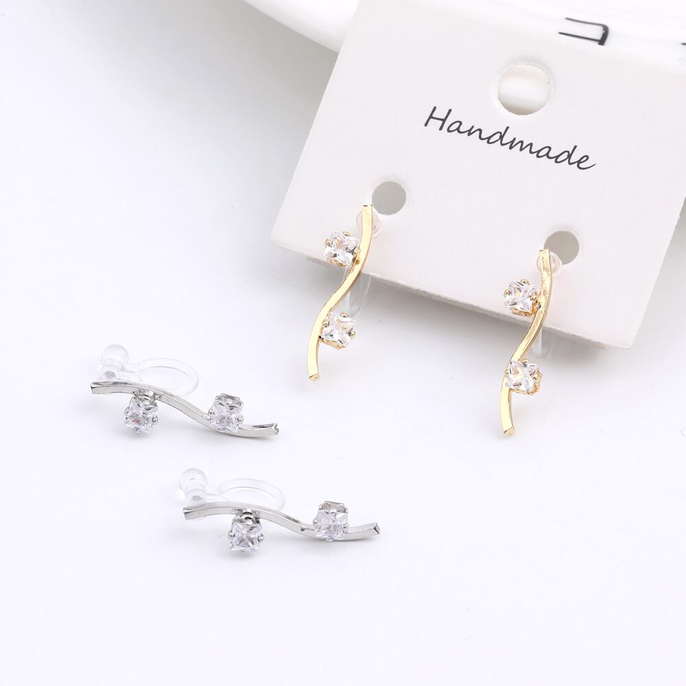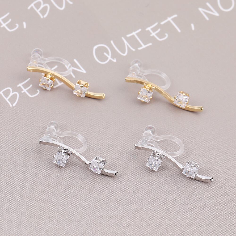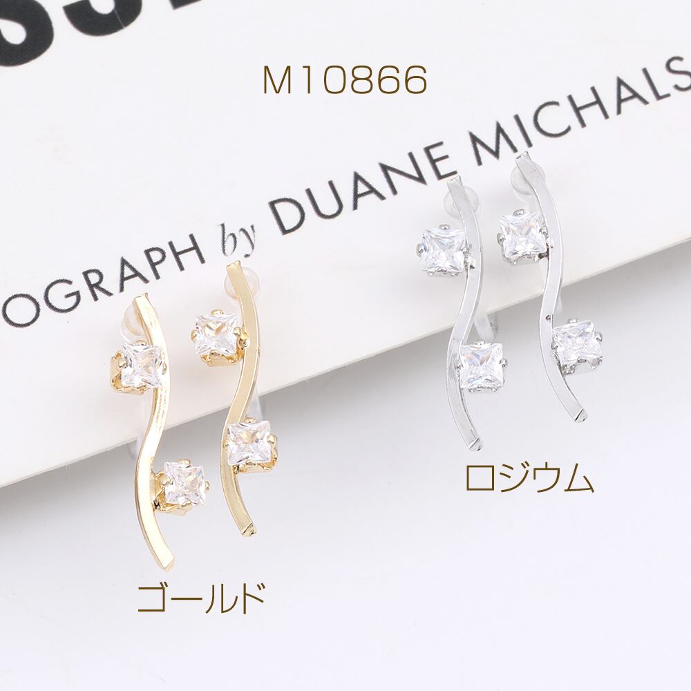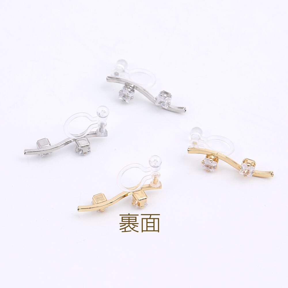 M10866 樹脂ノンホールピアス スティック S型 ラインストーン付き スクエア型 5×20.5mm(1ペア) | Beads&parts BASE2号店
