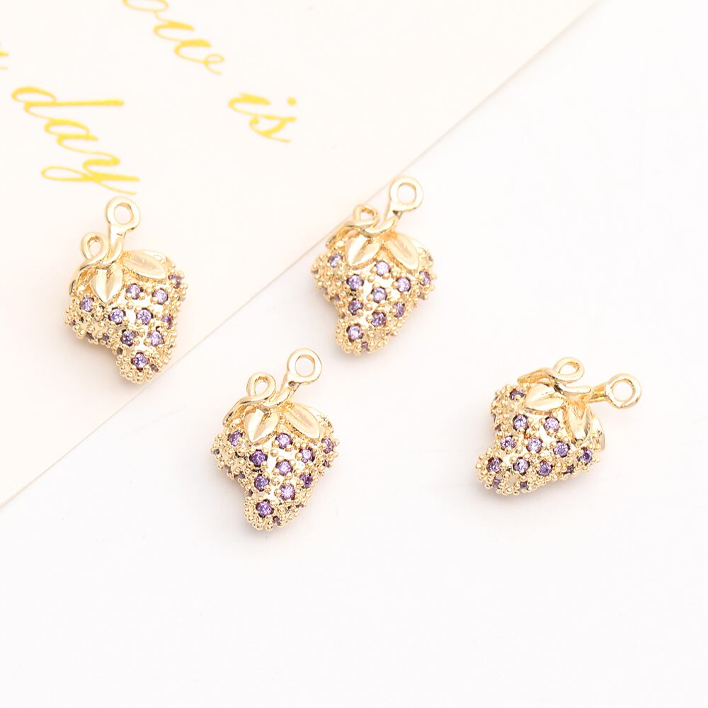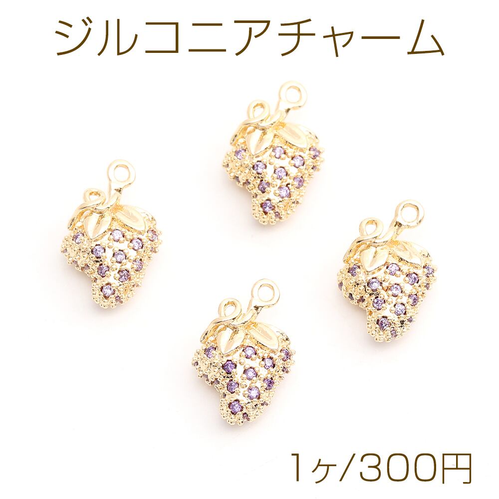 M3311 高品質ジルコニアチャーム いちご 10×14.5mm ゴールド(1ヶ) | Beads&parts BASE2号店