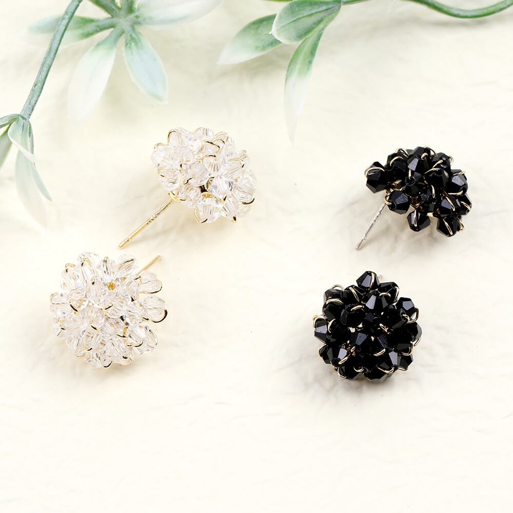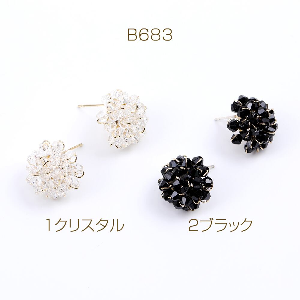 B683 デザインピアス ワイヤービーズ付き 半円 16mm(1ペア)