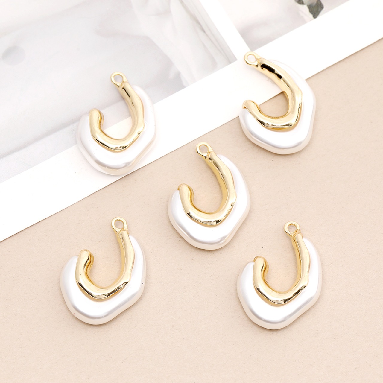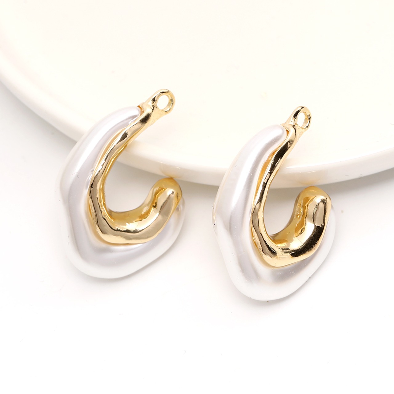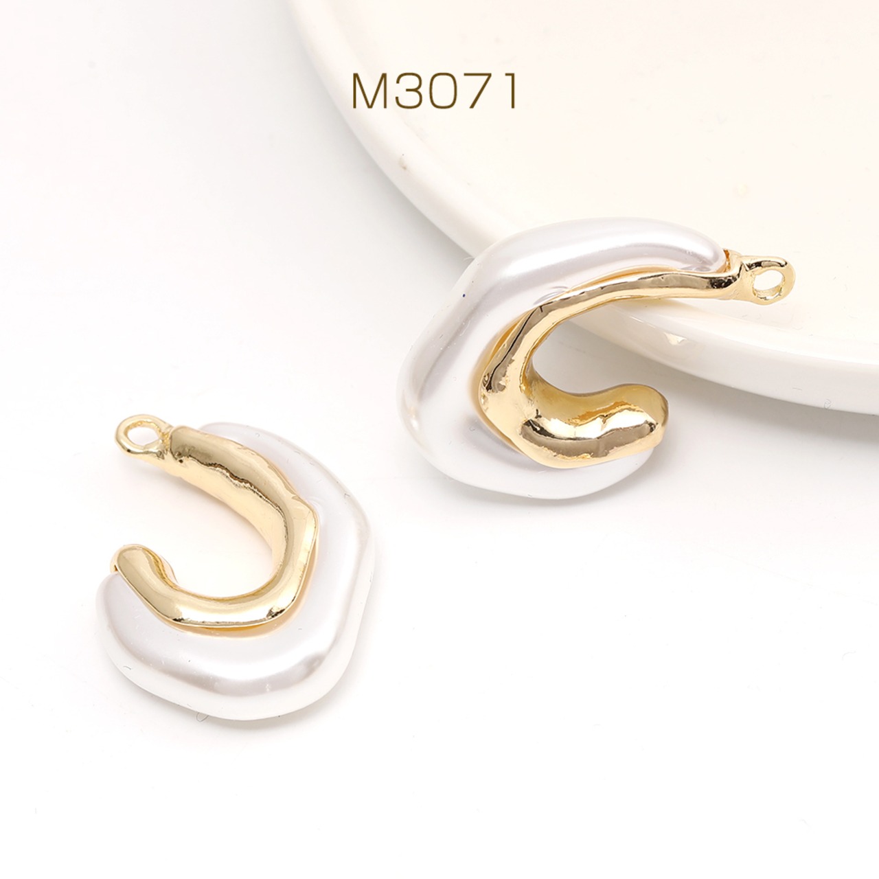 M3071 不規則チャーム メタルチャーム アクリルチャーム 25×35mm パールホワイト(1ヶ)