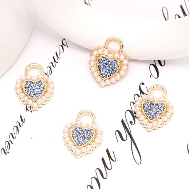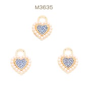 M3635 ハートチャーム パール&ラインストーン付き 14×18mm(4ヶ) | Beads&parts BASE2号店
