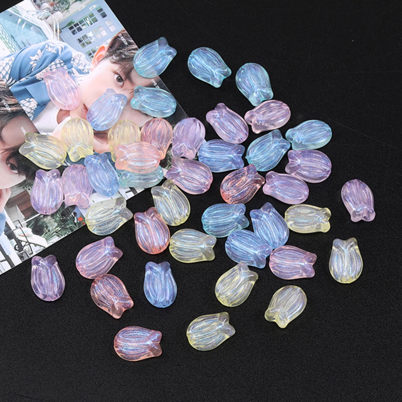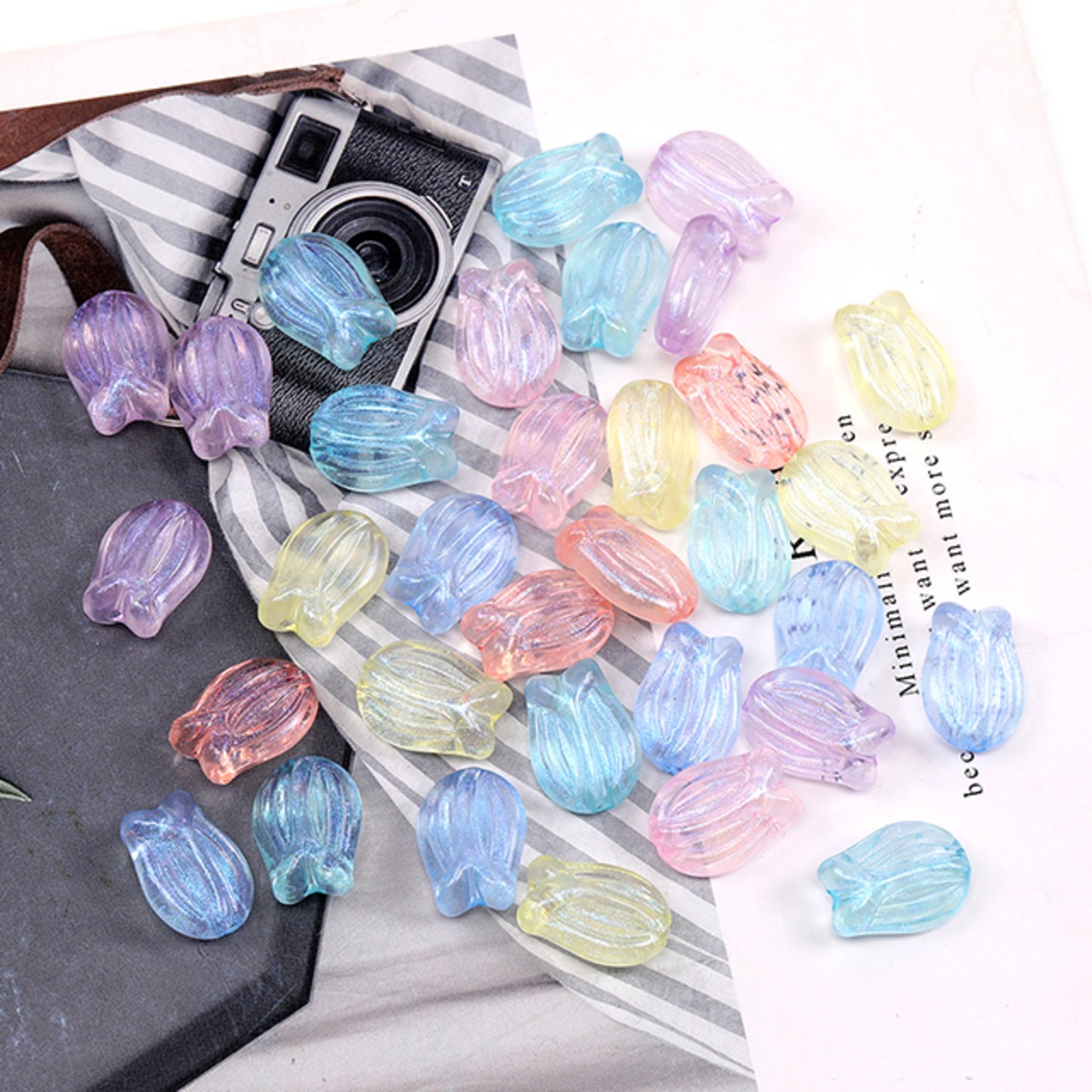 A4242 アクリルビーズ オーロラビーズ フラワー チューリップ 11.5×16mm ミックスカラー(30ヶ)