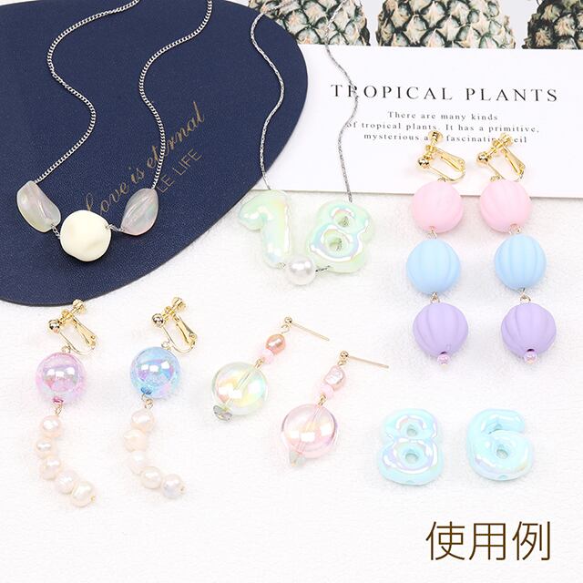 A4269 アクリルビーズ 数字ビーズ ミックス オーロラホワイト(4ヶ)