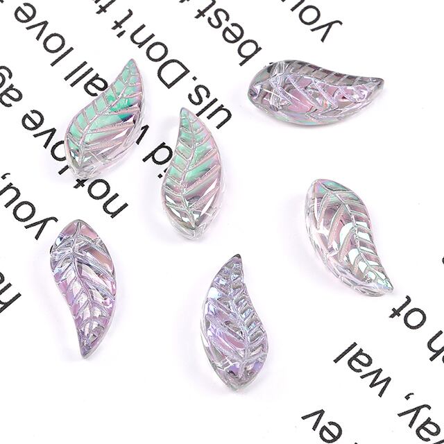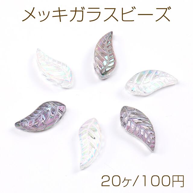 B1242 メッキガラスビーズ リーフ 7.5×18mm オーロラカラー(20ヶ) | Beads&parts BASE2号店