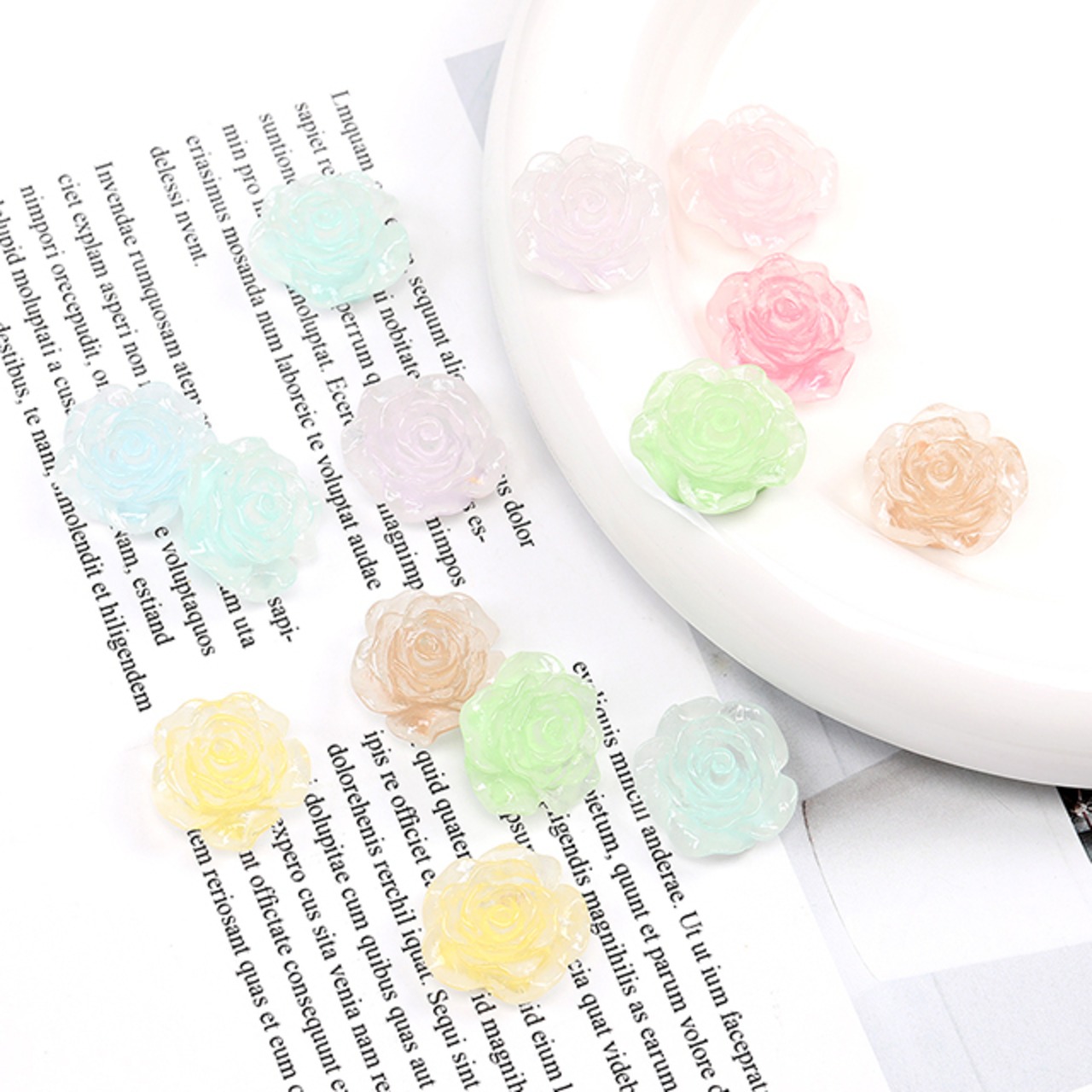 A2723 樹脂貼付けパーツ 樹脂カボション バラ 19mm ミックスカラー(15ヶ)