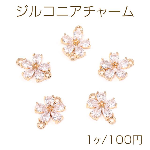 M10707 高品質ジルコニアチャーム フラワー 2カン 13×17mm ゴールド(1ヶ) | Beads&parts BASE2号店