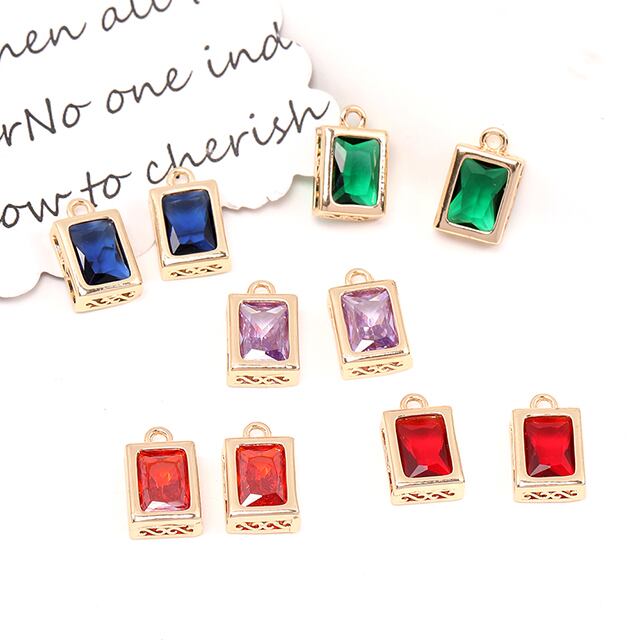 M1851 高品質フレームガラスチャーム 長方形型 1カン 7.5×12.5mm ゴールド(2ヶ) | Beads&parts BASE2号店