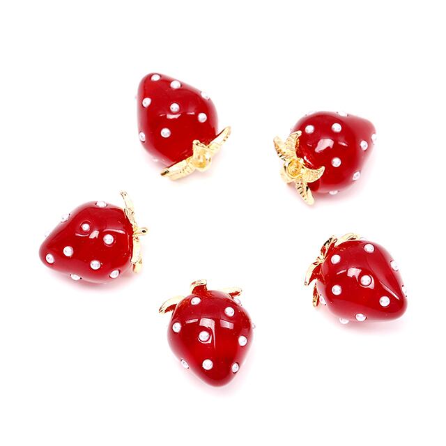 A1837 いちごチャーム 樹脂製イチゴチャーム かわいいフルーツチャーム 苺チャーム パール付き 12×16mm ダークレッド(2ヶ) | Beads&parts BASE2号店