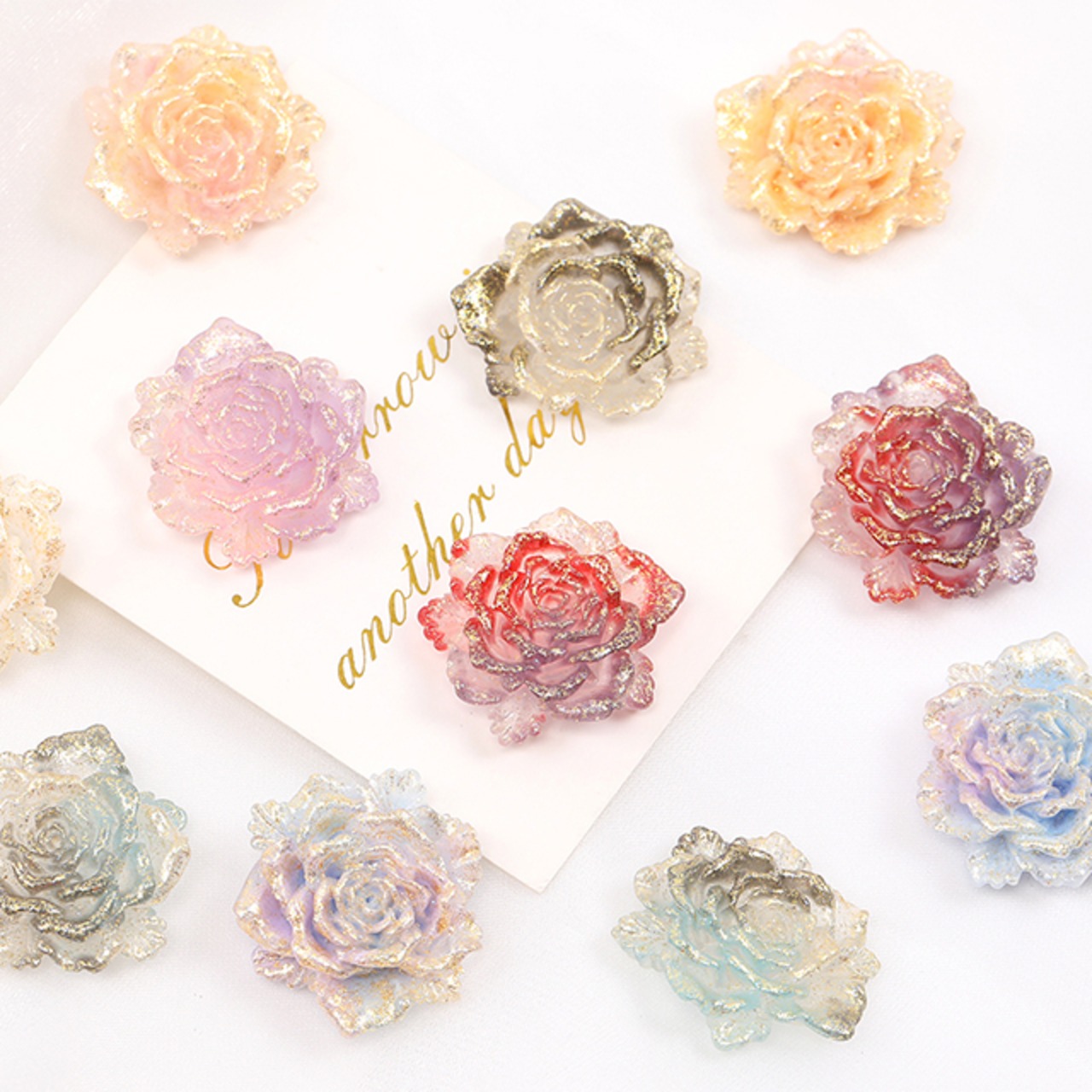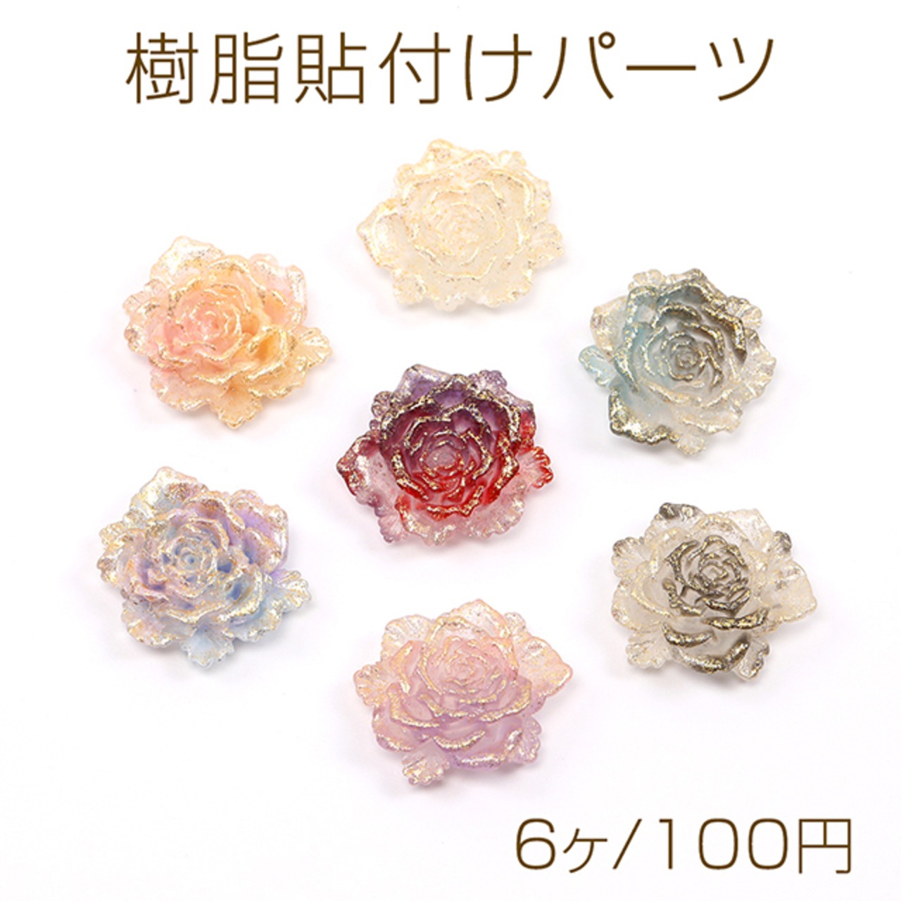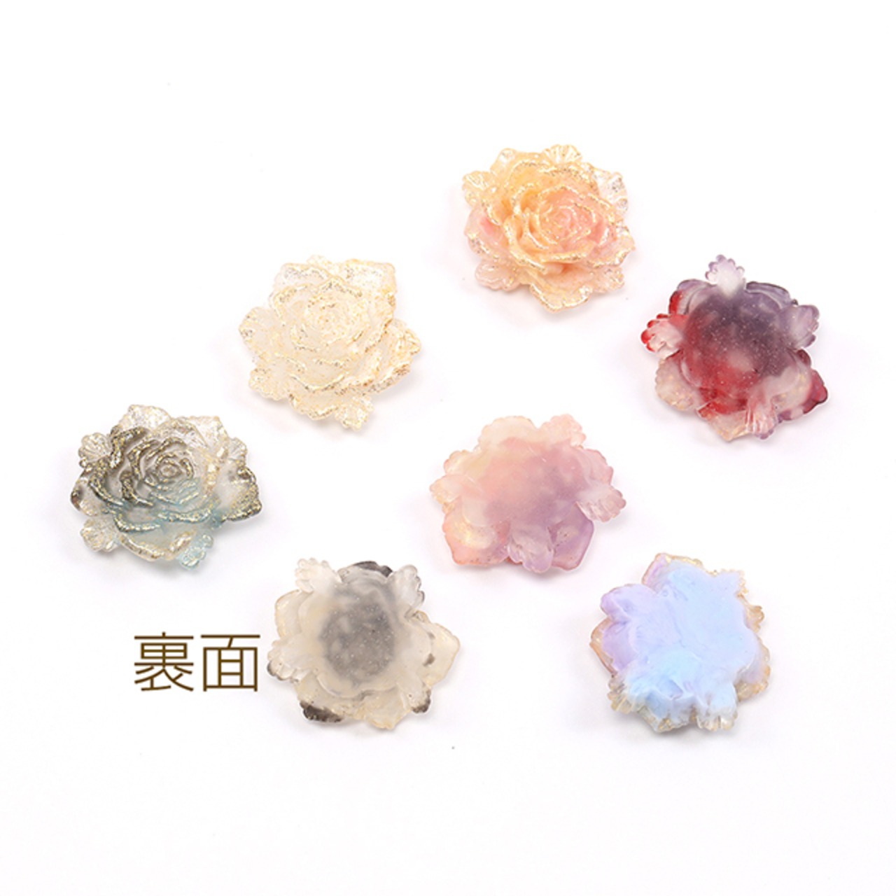 A4284 樹脂貼付けパーツ 樹脂カボション フラワー 23×24mm グラデーションオーロラカラー(6ヶ)