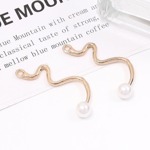 M11461 ひねりチャーム スティックチャーム パール付きチャーム 1カン 6×34mm ゴールド(4ヶ) | Beads&parts BASE2号店