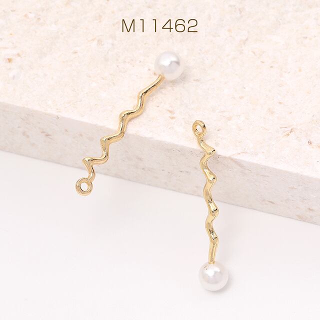 M11462 ひねりチャーム スティックチャーム パール付きチャーム 1カン 6×35mm ゴールド(4ヶ) | Beads&parts BASE2号店