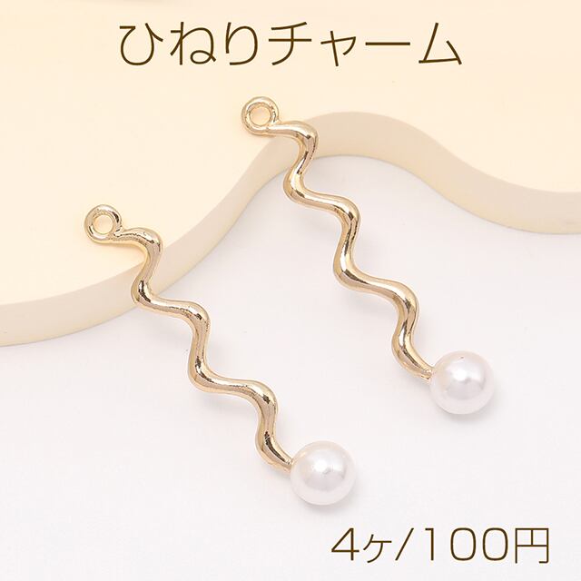 M11463 ひねりチャーム スティックチャーム パール付きチャーム 1カン 6×35mm ゴールド(4ヶ) | Beads&parts BASE2号店