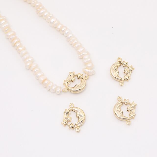 M11505 色褪せにくい14KGPゴールドメッキ デザインコネクターパーツ サークル 星と月 2カン 12.5×16mm(2ヶ)