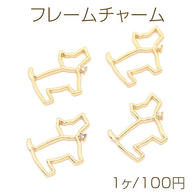 M11542 色褪せにくい14KGPゴールドメッキ フレームチャーム ドッグ 22×28mm(1ヶ) | Beads&parts BASE2号店