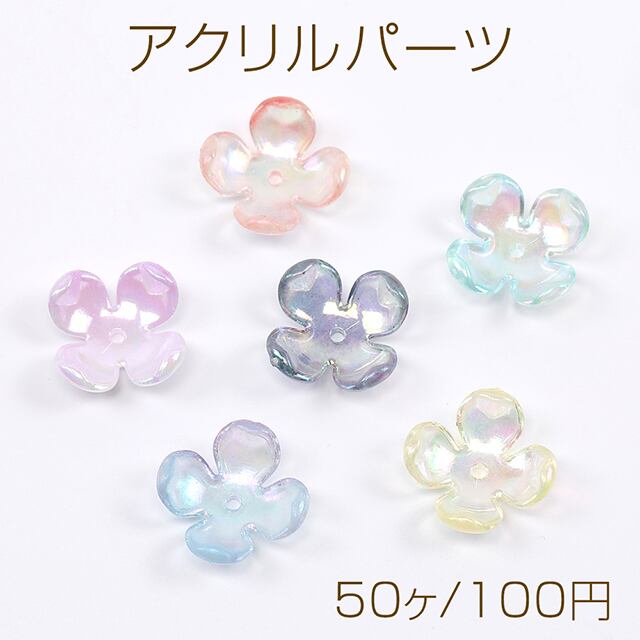 A4306 アクリルパーツ フラワー 四弁花 14.5mm グラデーションオーロラカラー(50ヶ) | Beads&parts BASE2号店