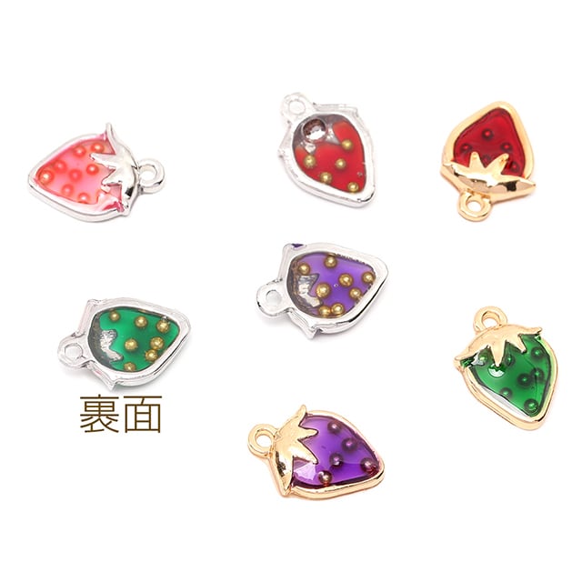 M11629 いちごチャーム エポ付きイチゴチャーム かわいいフルーツチャーム 苺チャーム 10×14.5mm(4ヶ) | Beads&parts BASE2号店