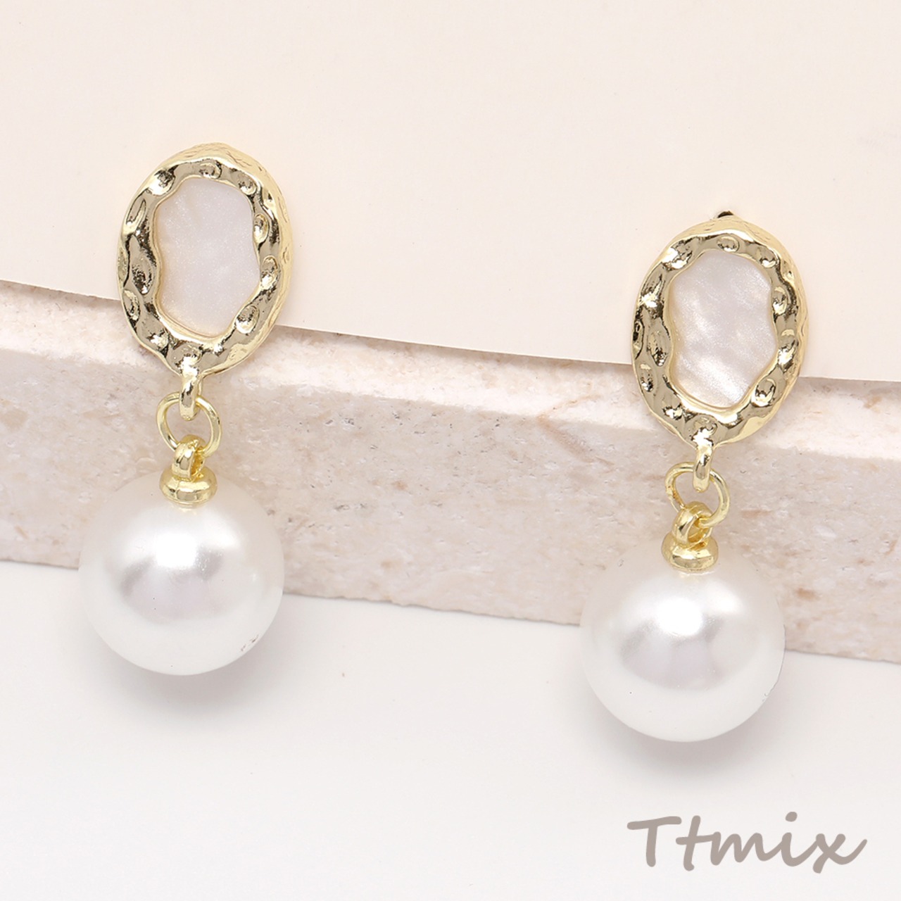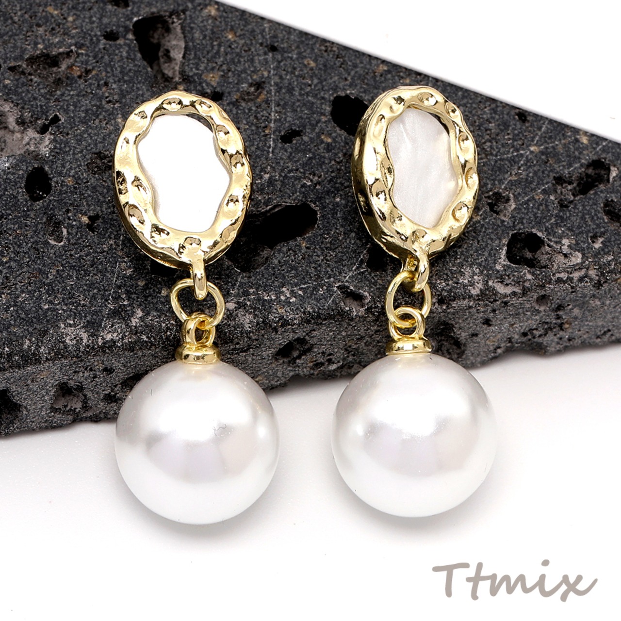 TE967 デザインピアス オーバル&パールのピアス 11.5×32mm(1ペア)