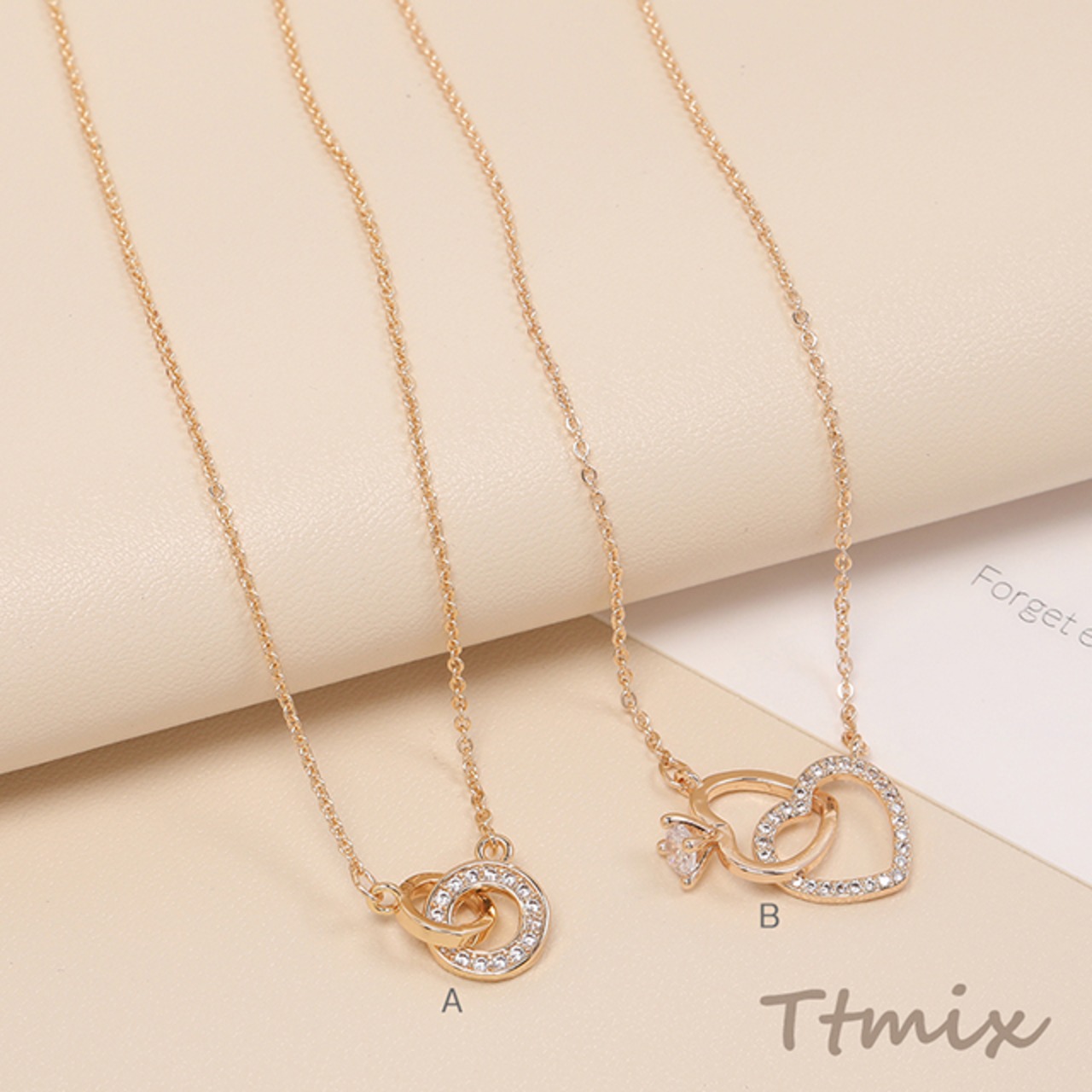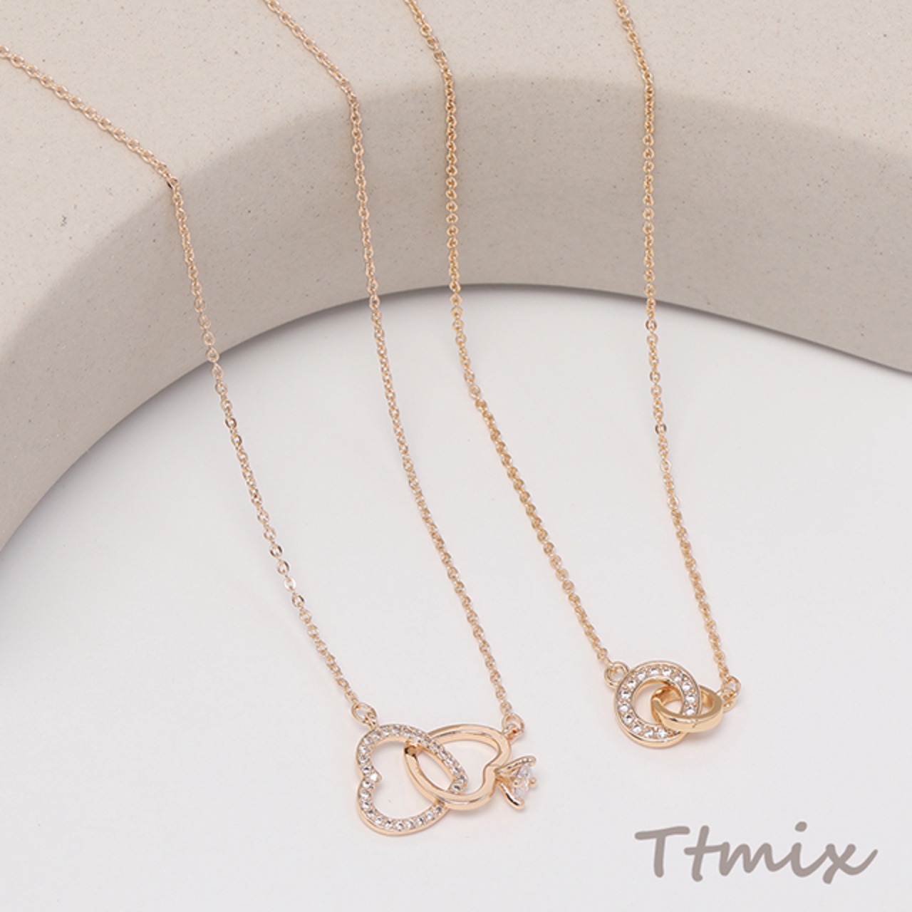 TN407 ネックレス 2連サークル 2連ハート ジルコニア付き ゴールド