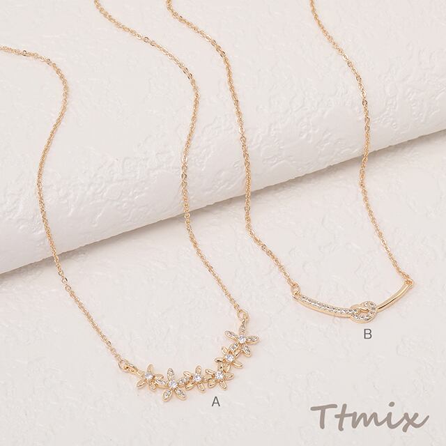 TN409 ネックレス 6連フラワー 結び目 ジルコニア付き ゴールド(A)