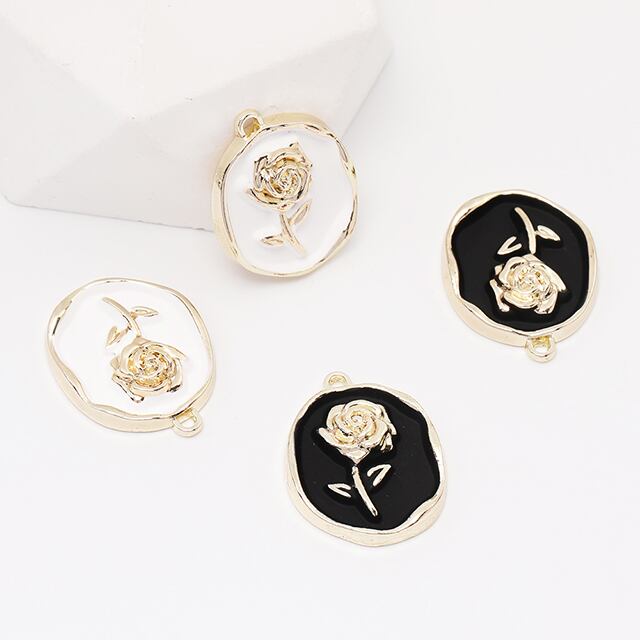 M11668 高品質エポチャーム オーバル バラ 17×22mm ゴールド(2ヶ) | Beads&parts BASE2号店