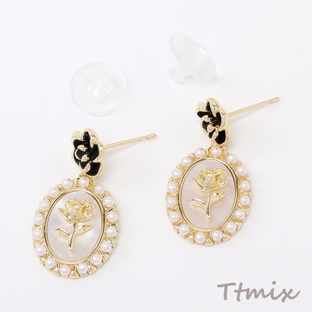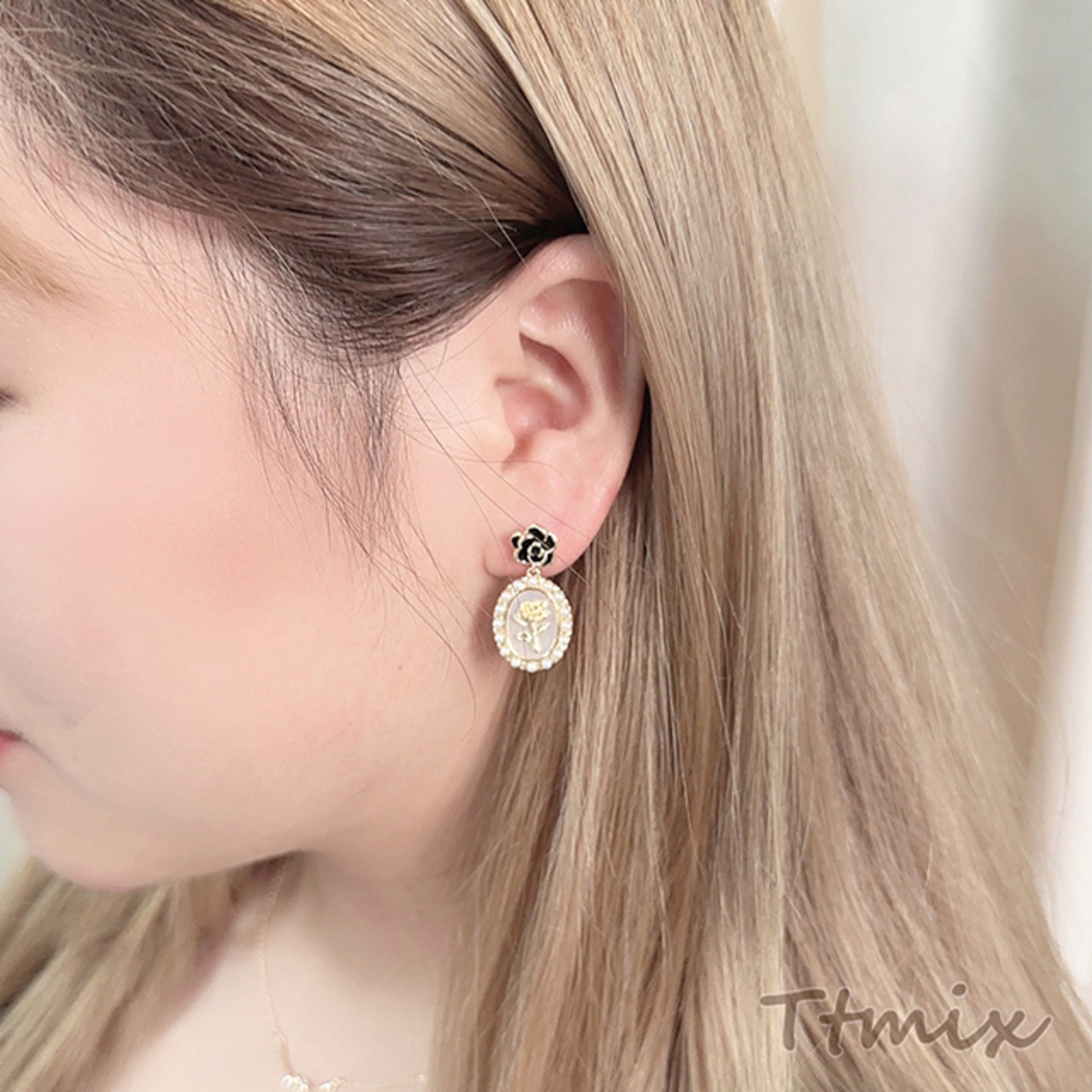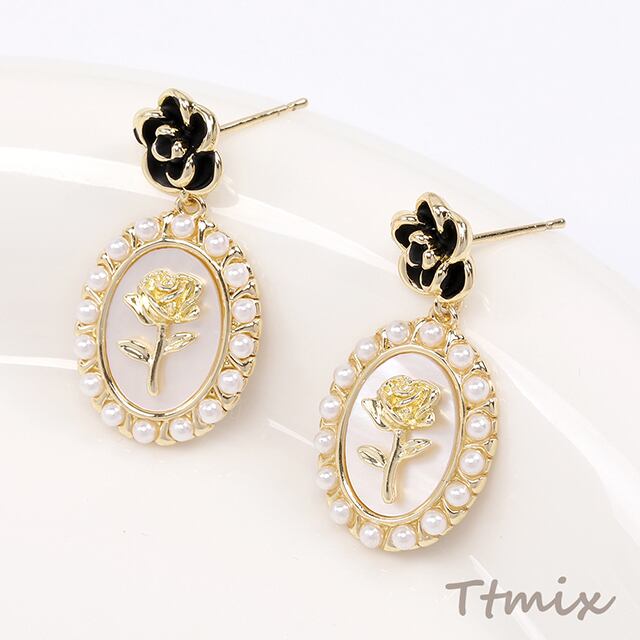 TE974 デザインピアス フラワーのピアス 15×28.5mm(1ペア)