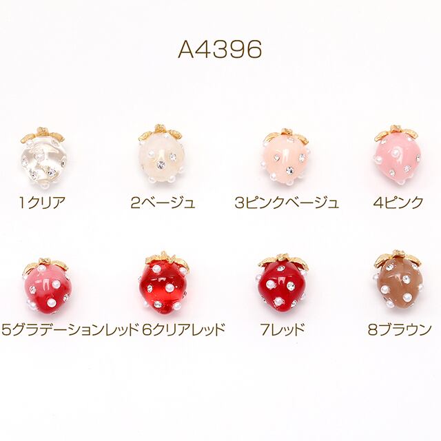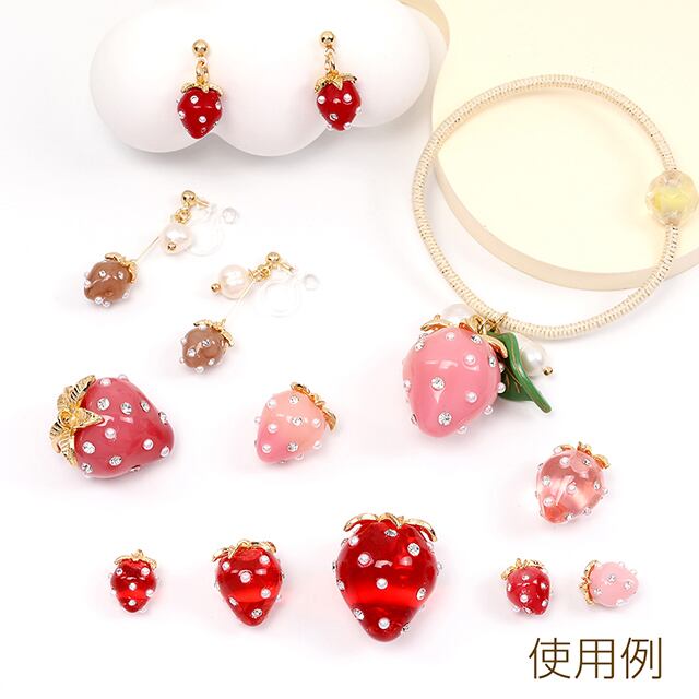 A4396 いちごチャーム 樹脂製イチゴチャーム かわいいフルーツチャーム 苺チャーム パール&ラインストーン付き ゴールド 8×11mm(4ヶ) | Beads&parts BASE2号店
