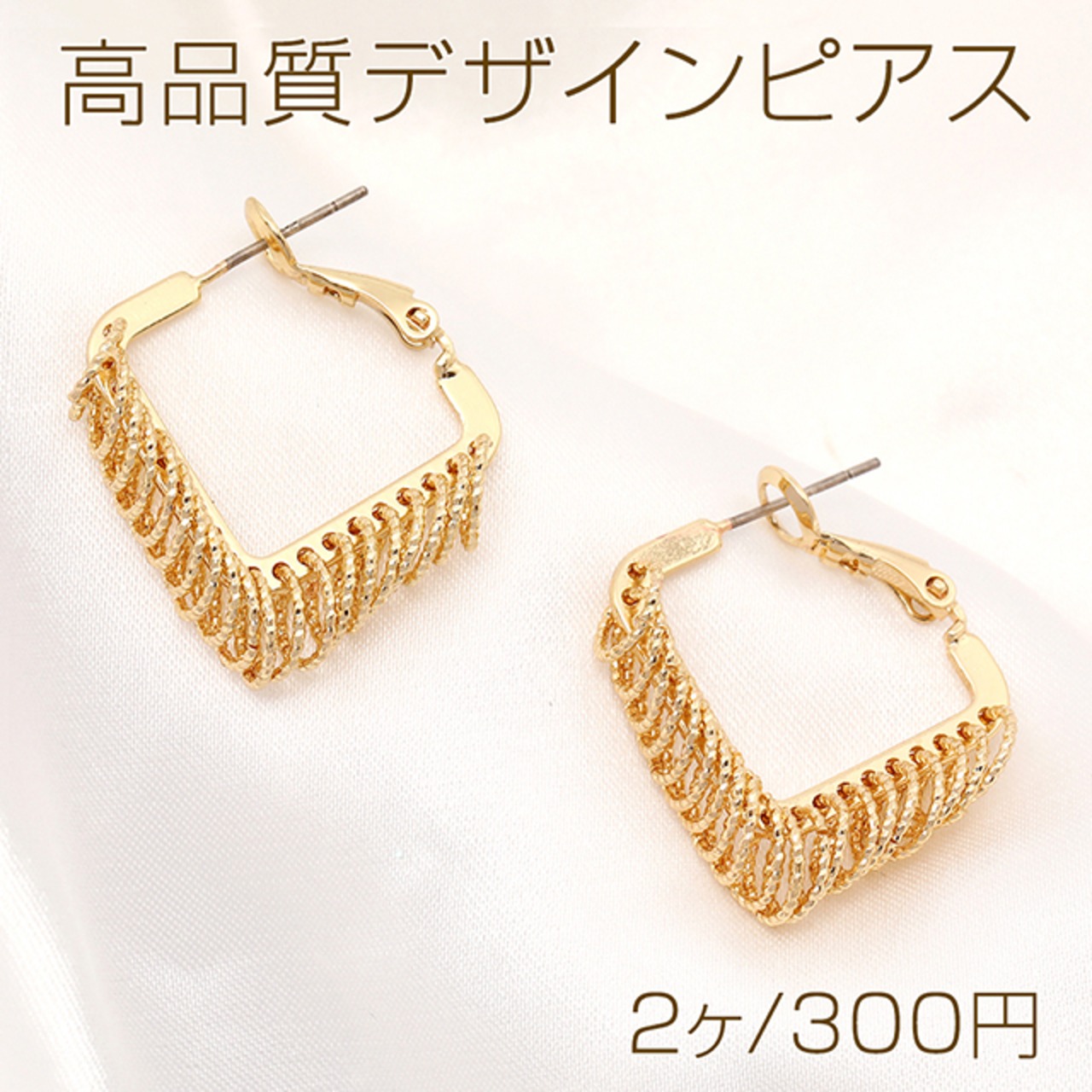 M11702 高品質デザインピアス ひし形のピアス 25×29mm ゴールド(2ヶ)