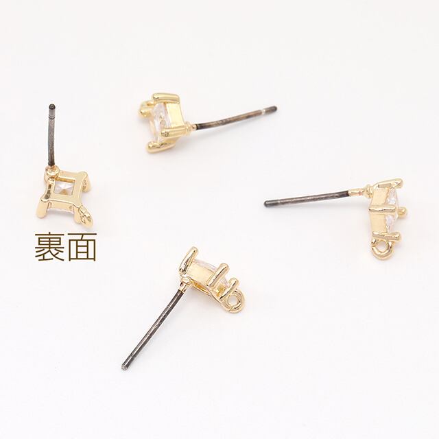 M11707 デザインピアス ひし形 ジルコニア付き カン付き 7×9mm ゴールド(2ヶ)