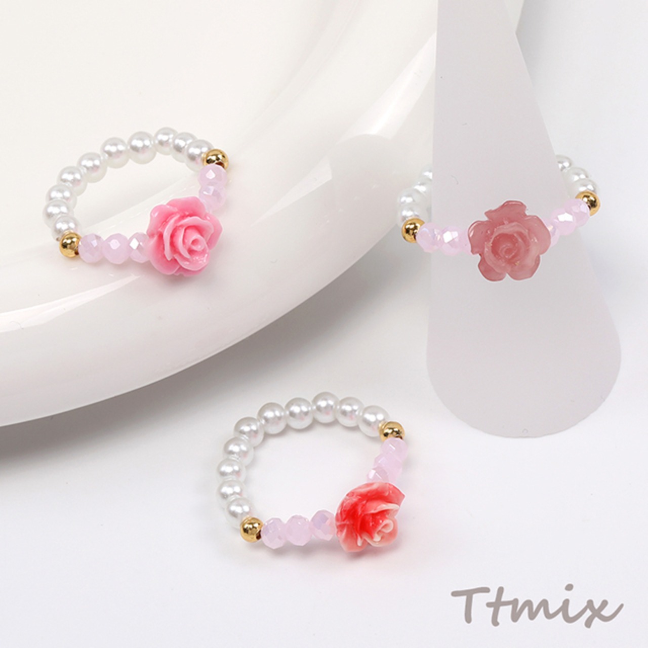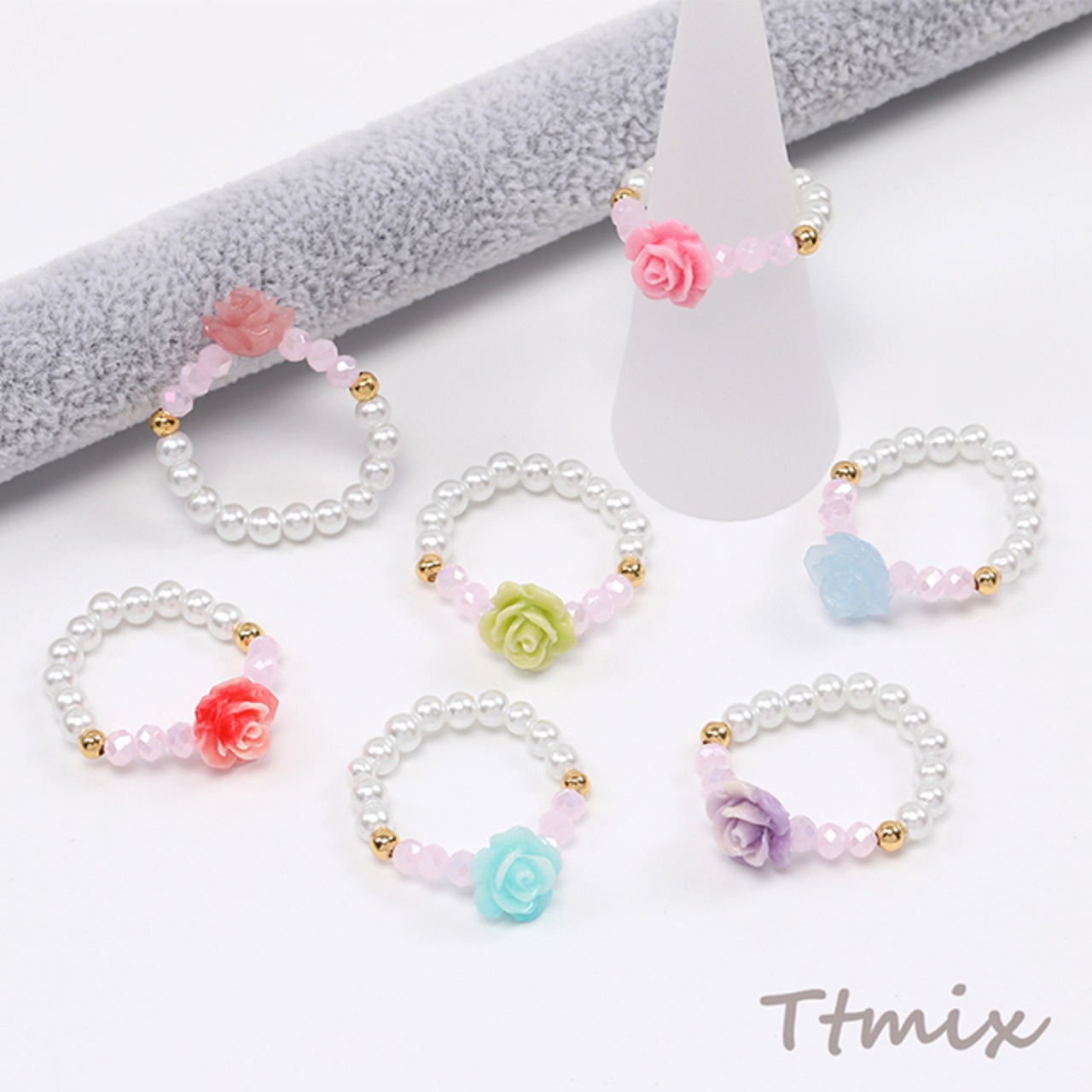 TR661 レディスリング 指輪 フラワー ミックスカラー(1ヶ)
