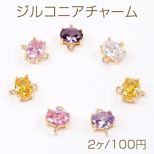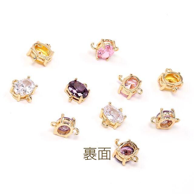 M11787 ジルコニアチャーム オーバル 2カン 8.5×10.5mm ゴールド(2ヶ) | Beads&parts BASE2号店