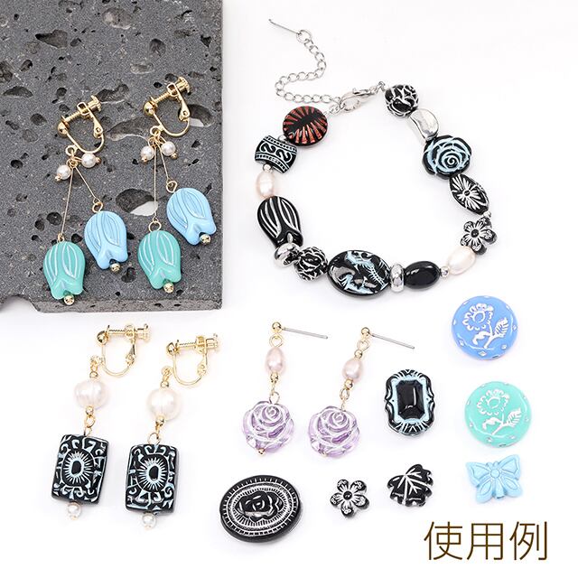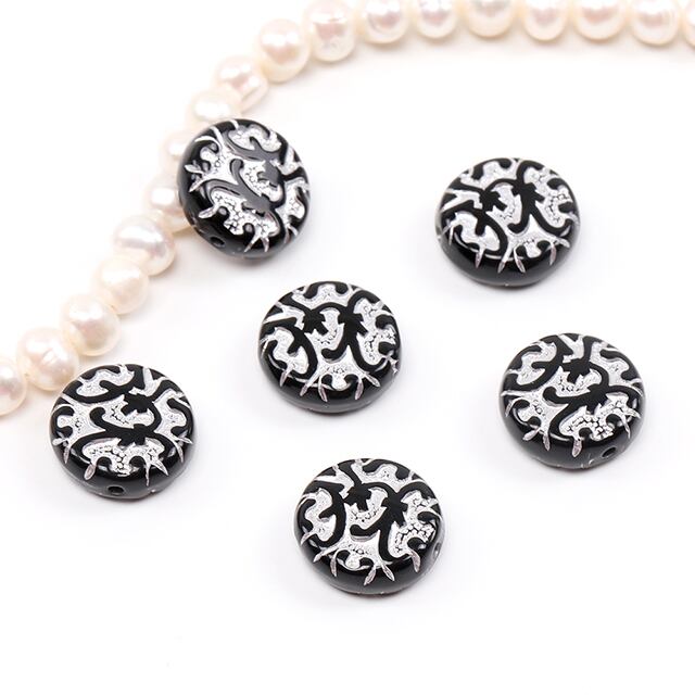 A4521 アンティーク調アクリルビーズ コイン型 13mm ブラック×シルバー(30ヶ)
