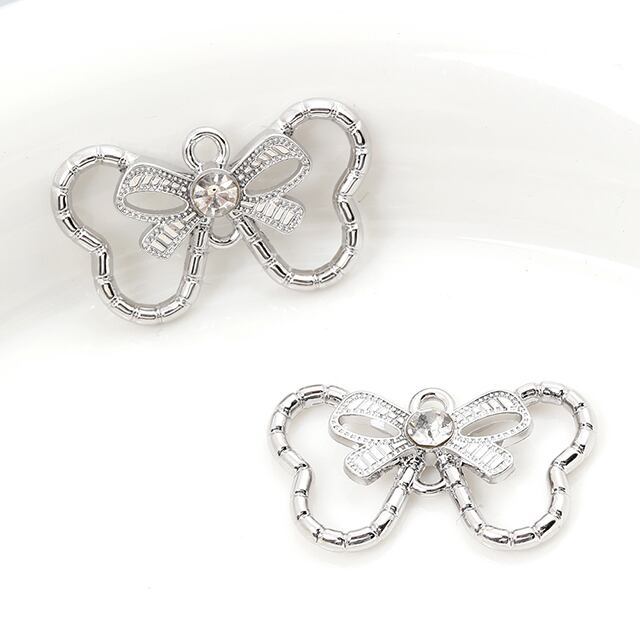 M11854 メタルチャーム ラインストーン付きチャーム 蝶 15×25mm ロジウム(4ヶ) | Beads&parts BASE2号店