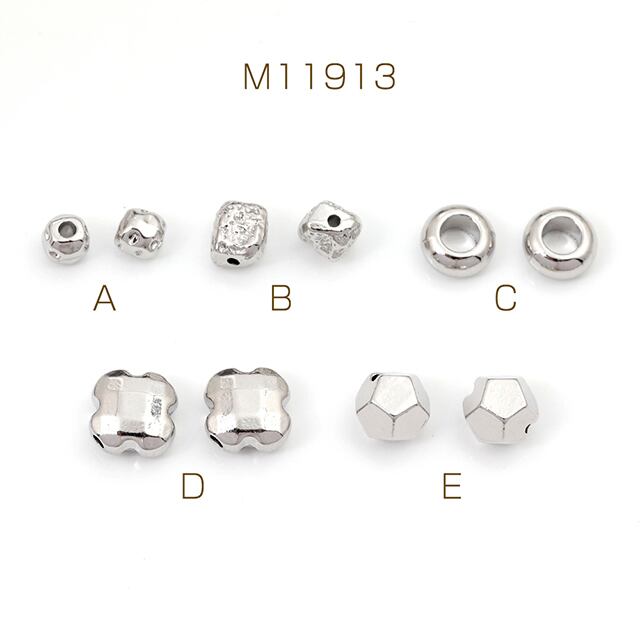 サイズ:【A】約4.8×5mm(穴直経約1.5mm)【B】約6×6.7mm(穴直経約1.2mm)【C】約4×8mm(穴直経約4mm)【D】約9.5×10mm(穴直経約1.2mm)【E】約7.6mm(穴直経約1mm)
