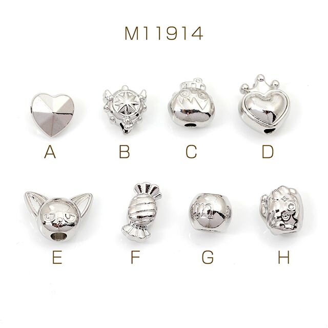 サイズ:【A】約10×10mm(穴直経約1.3mm)【B】約10×10.5mm(穴直経約2.3mm)【C】約11×11.5mm(穴直経約2.3mm)【D】約12×13.5mm(穴直経約2.3mm)【E】約11×16mm(穴直経約3.3mm)【F】約7×14mm(穴直経約2.3mm)【G】約8×10mm(穴直経約5mm)【H】約10×10mm(穴直経約4mm)