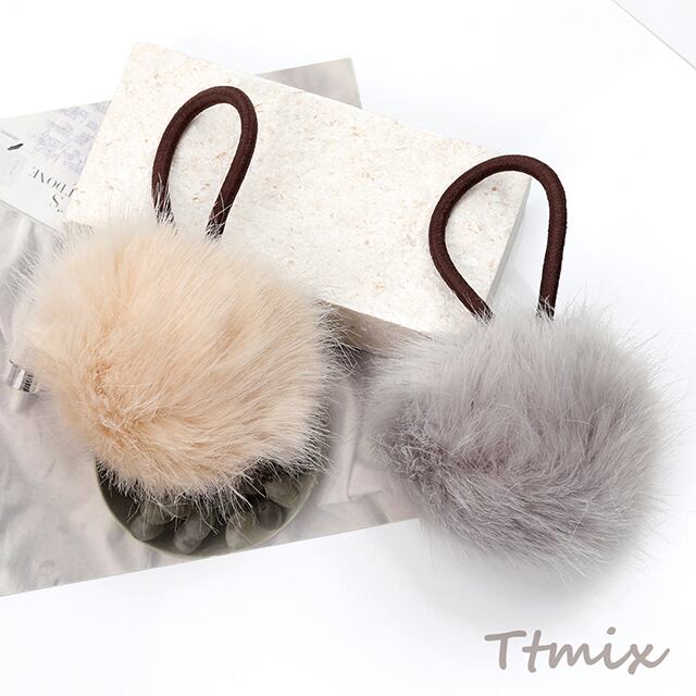 TH1127 ヘアゴム フェイクファーボール付き 6×9cm(1ヶ) | Beads&parts BASE2号店